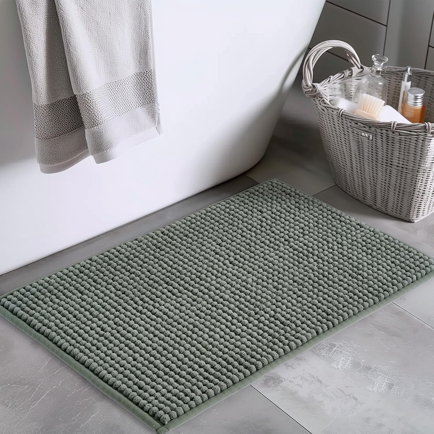 FRESHMINT Thick Chunky Chenille Bath Rugs 20"x32", Non Slip Bath Mat, Soft Bathroom Decor, Cute Shower Mat, Water Absorbent, Washable, Sage Green