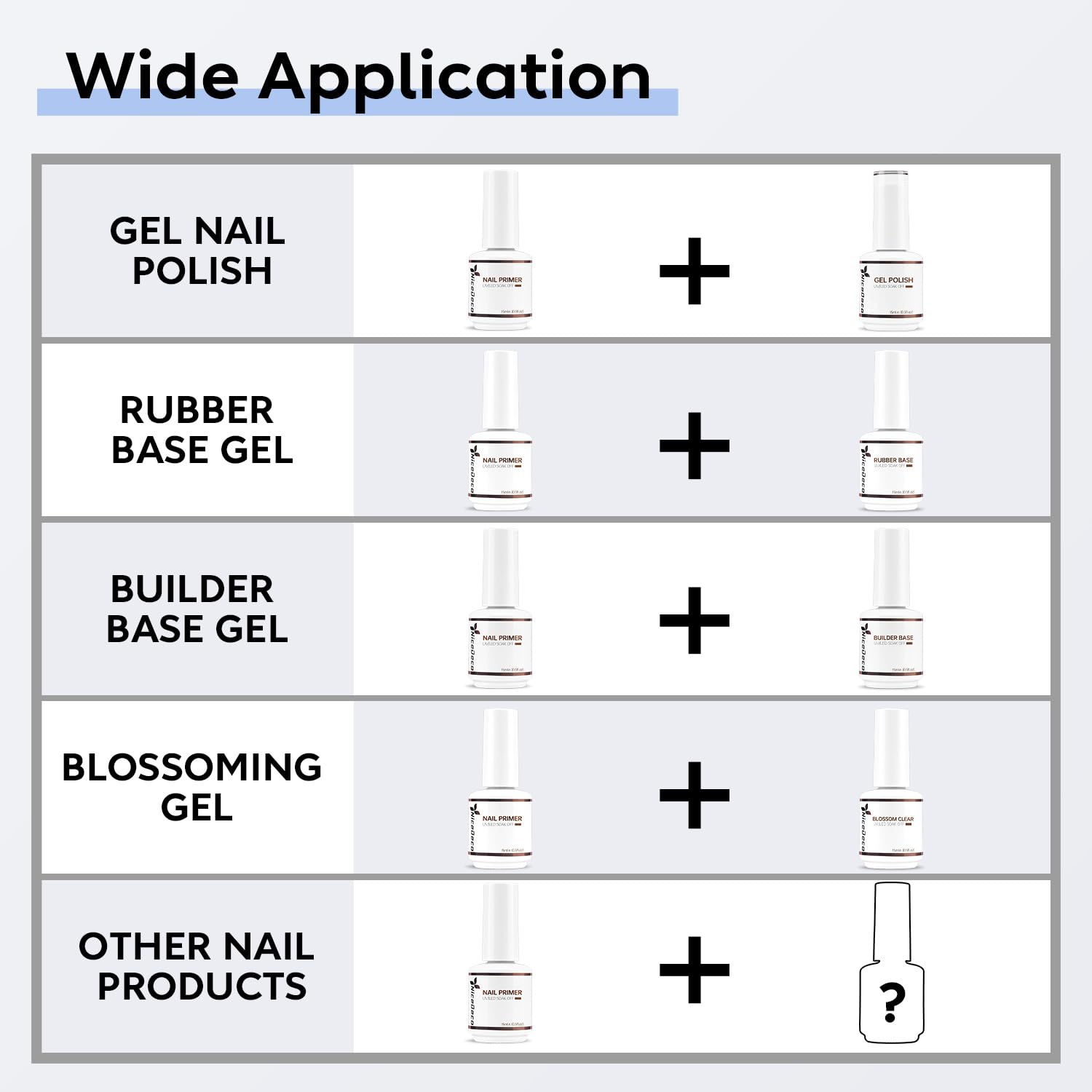 - Works with All Mani-Products: Compatible with all nail art products, including gel nails, acrylic powder, extension gel, cuticle oil, and more! Our primer works great with leading brands and liquid systems, making it the ideal addition to your nail kit.