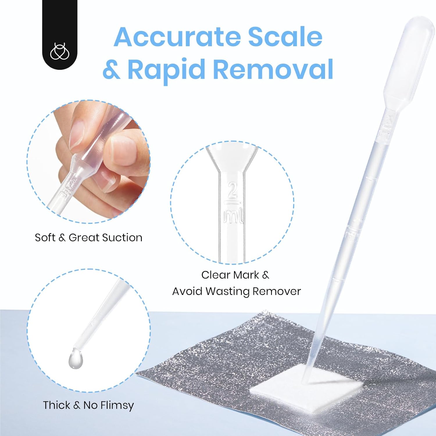 - 【Precise Quantification】5 Pack Preservative & Reusable droppers make it easy for nail polish remover liquid extraction. No more liquid spillage, prevent acetone from wasting, making your nail removal experience cleaner and healthier.