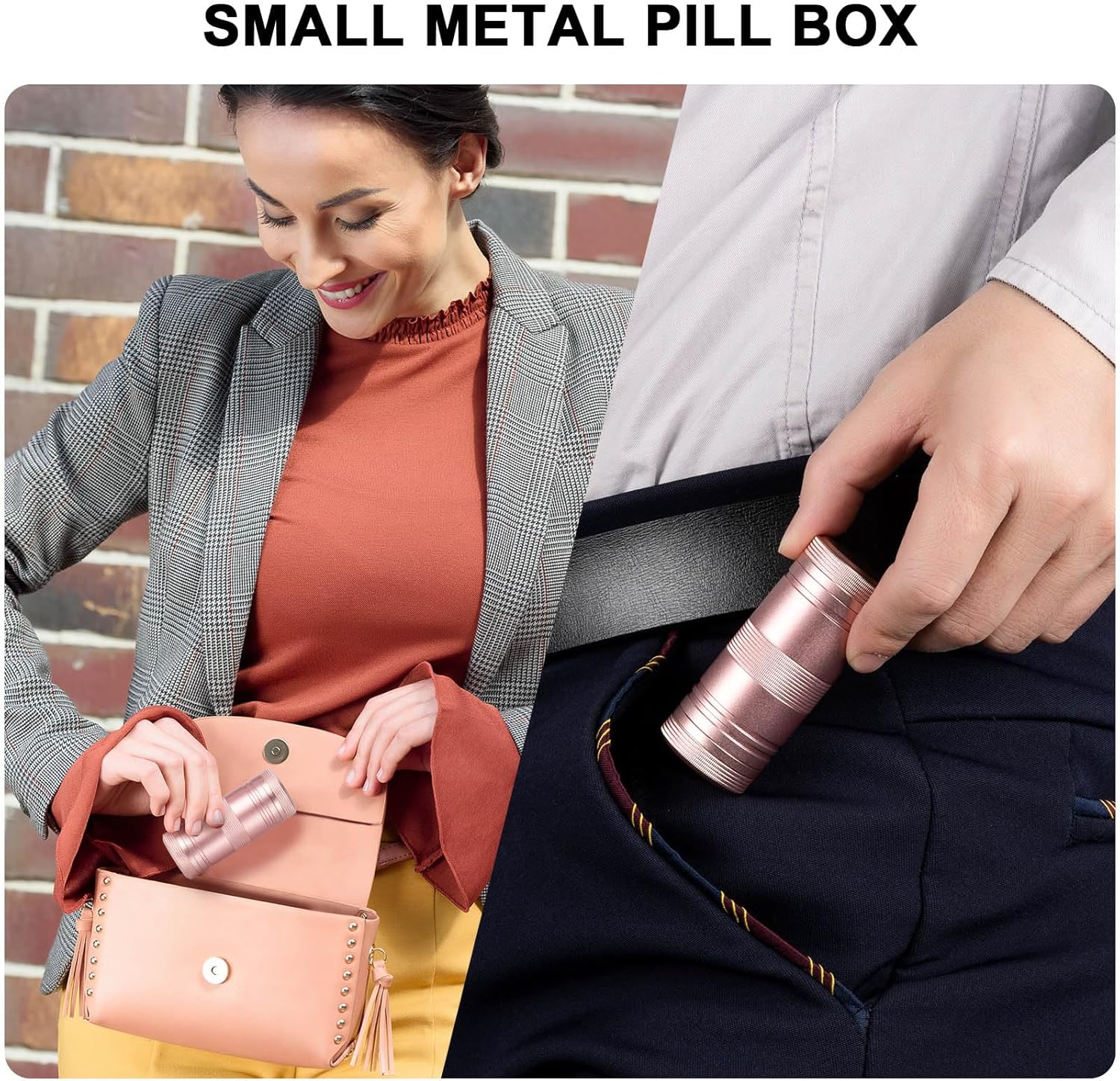 - Premium Material: The pill case is made from durable pure Aluminum Alloy, which is harmless and sturdy. Say goodbye to flimsy plastic pill containers.