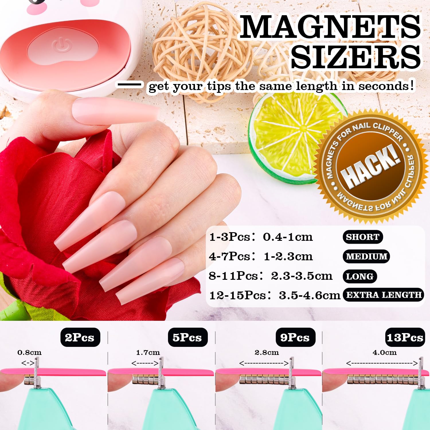 - ✂️Powerful Magnet Sizers -- Easiest nail hack to get your tips the same length in seconds!Our magnets have a total length of 1.6 inches, the height of each pcs is 0.11 inches, you can adjust the desirable length by using different numbers of magnets.If you are worried that the magnets will move, you can fix the first magnet with glue on the clipper.