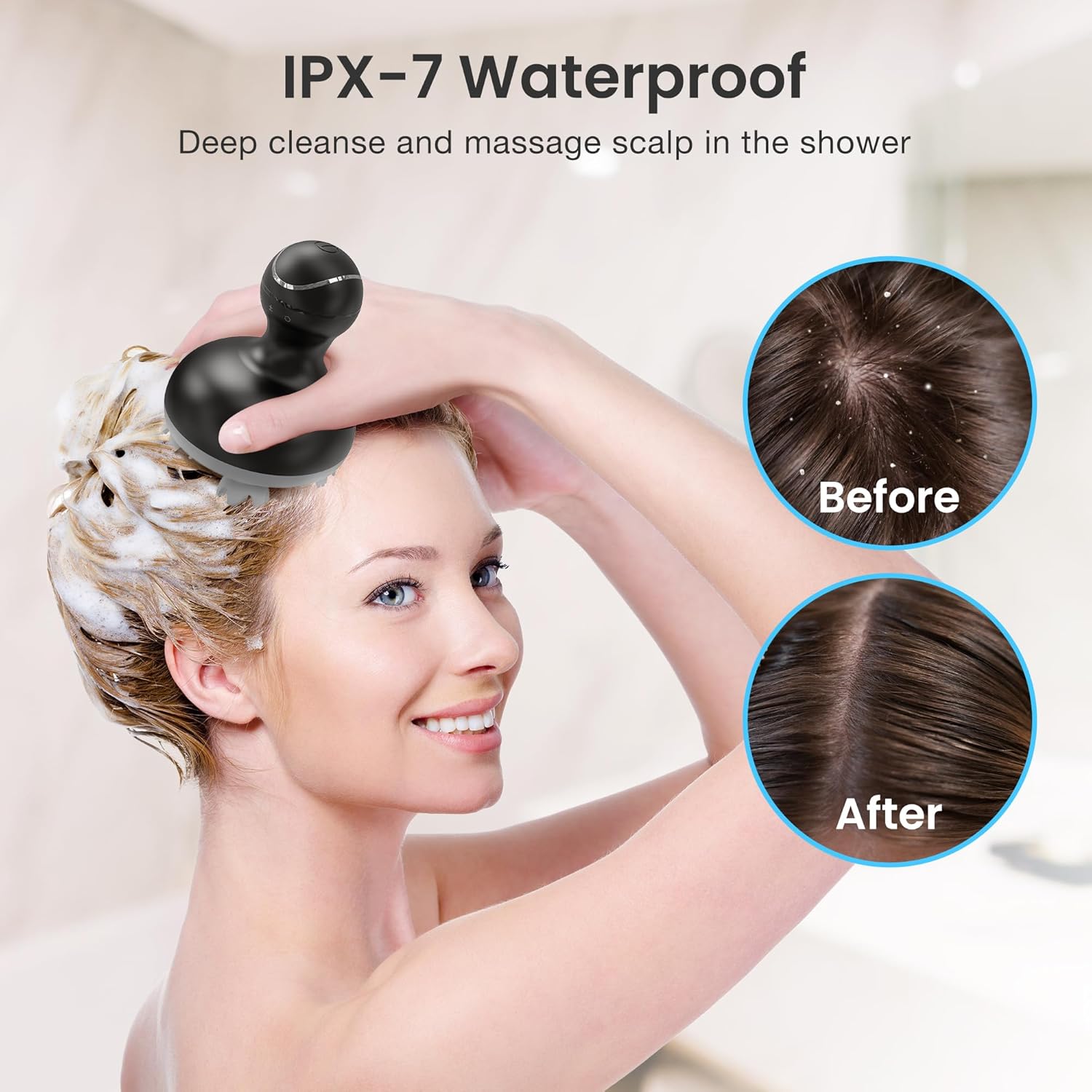 - Portable and Waterproof: Compact in size, COMFIER cordless scalp massager is comparable to a mug, offering the flexibility to use it anywhere after a full charge. With an extended battery life, the head scratcher can be used for hours on a single charge. Crafted with IPX-7 waterproof material and featuring both clockwise and counterclockwise rotation, it ensures a thorough scalp massage and effective dandruff removal.