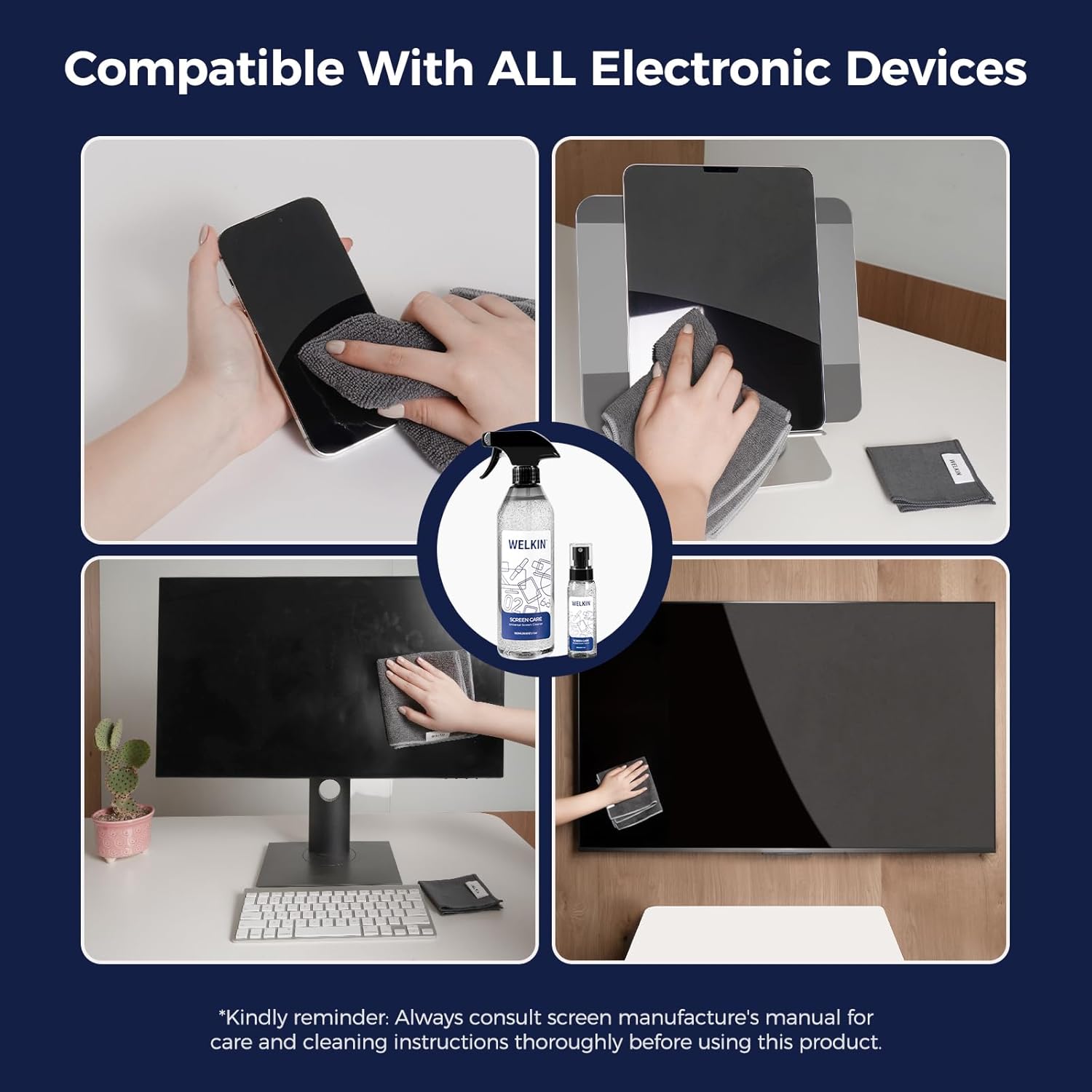 WELKIN Screen Cleaner Spray Kit (550ml + 60ml) - Cleaning Gel for TV, Laptop, Computer, Phone Touchscreen -2 Sprayers,1 Microfiber Cloth & 1 Glass Wipe