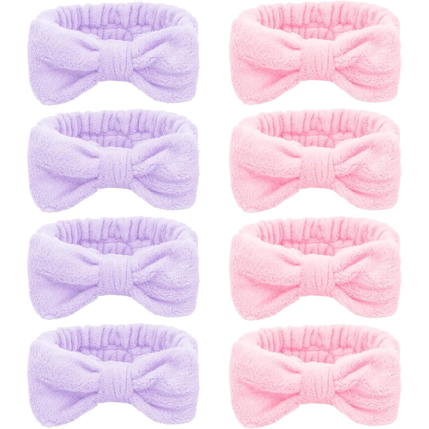 - Durable: These skin care headbands bulk including 4 pcs pink spa head bands and 4 pcs purple spa headbands. Cute bow design, you can sharing these headband with your sisters, family and friends. pink spa headbands are the necessary hair accessories for spa party & bachelorette party.