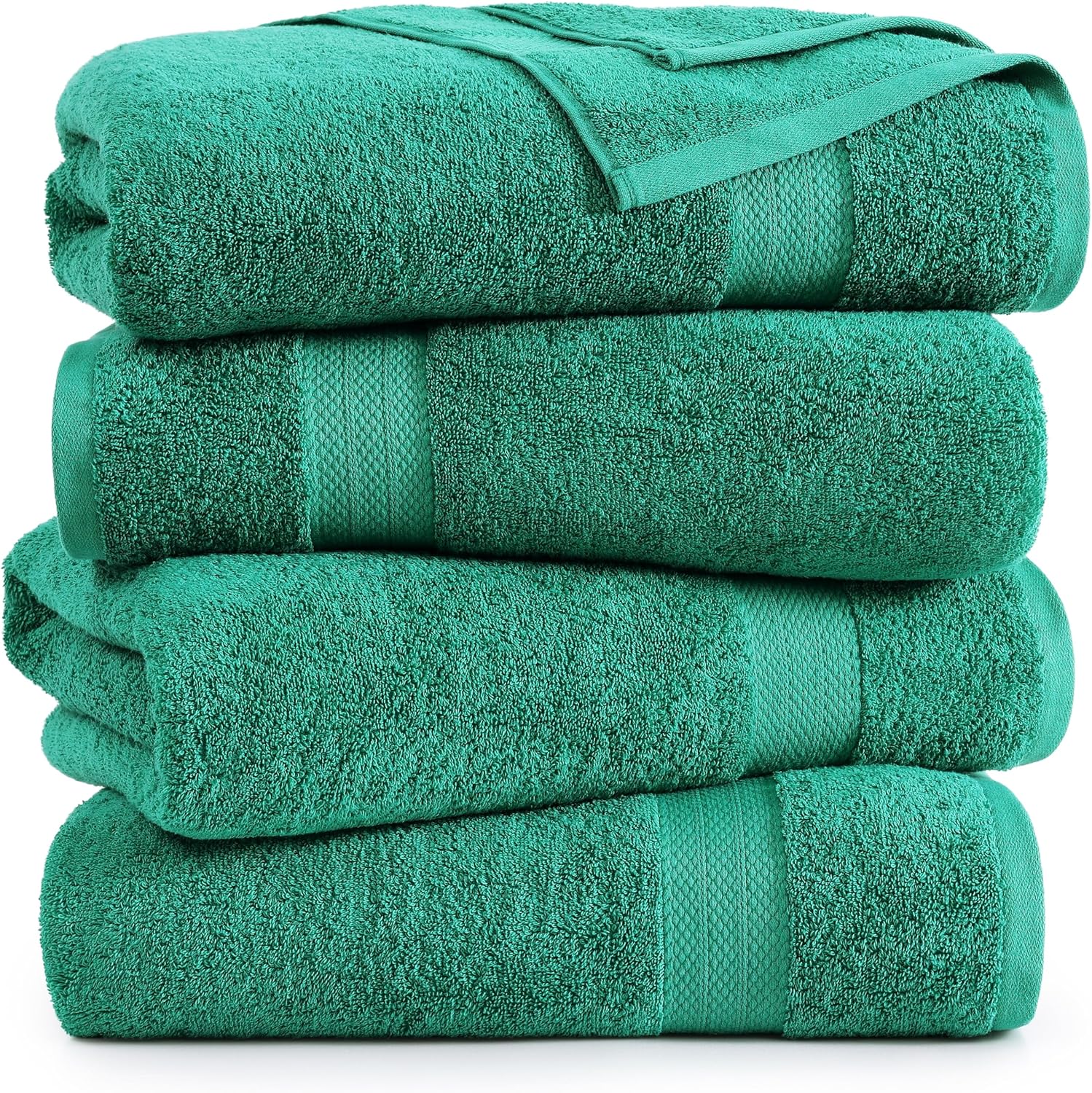LANE LINEN 100% Cotton Bath Towels Pack of 4 (28"x54") - Ring Spun Mercerized Cotton Bathroom Towel Set - Quick Dry, Soft & Absorbent Large Bath Towels - Holds Well After Multiple Washes - Emerald