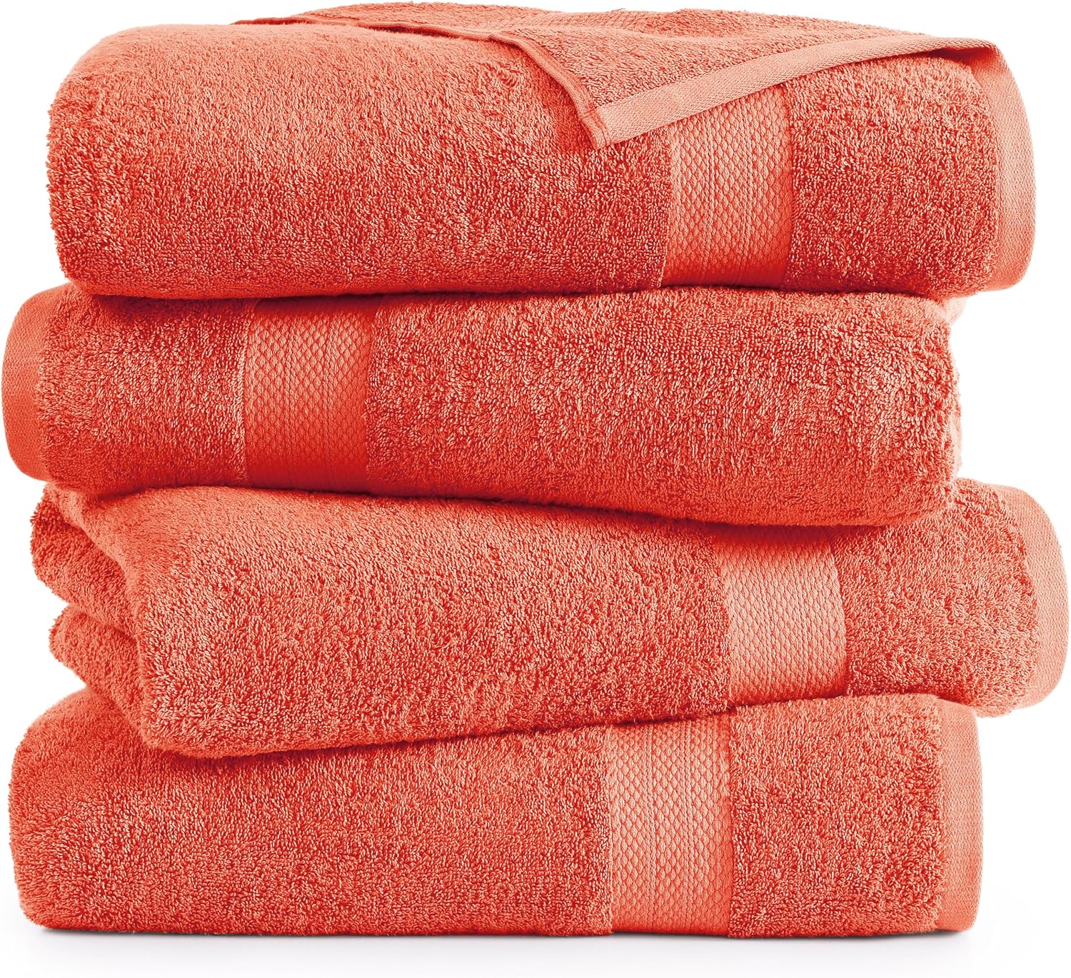 Lane Linen 100% Cotton 4 Pack Bath Sheets (35"x66") - Ring Spun Cotton - Extra Large Bath Towels Set - Quick Drying, Soft & Absorbent Oversized Bathroom Towel Sets - Spa & Hotel Quality - Living Coral