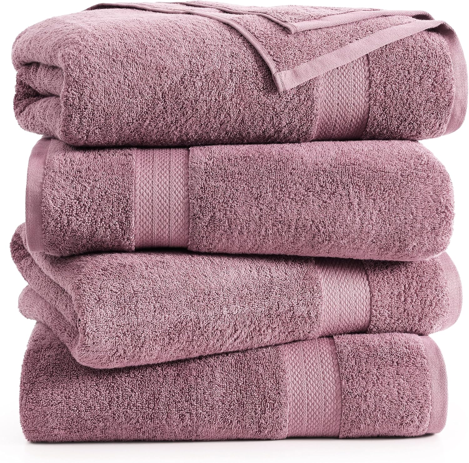 LANE LINEN 100% Cotton Bath Sheets 4 Pack (35"x66") - Ring Spun Cotton Extra Large Bath Towels Set - Quick Dry, Soft & Absorbent Oversized Towel Set - Holds Well After Multiple Washes - Wishful Mauve
