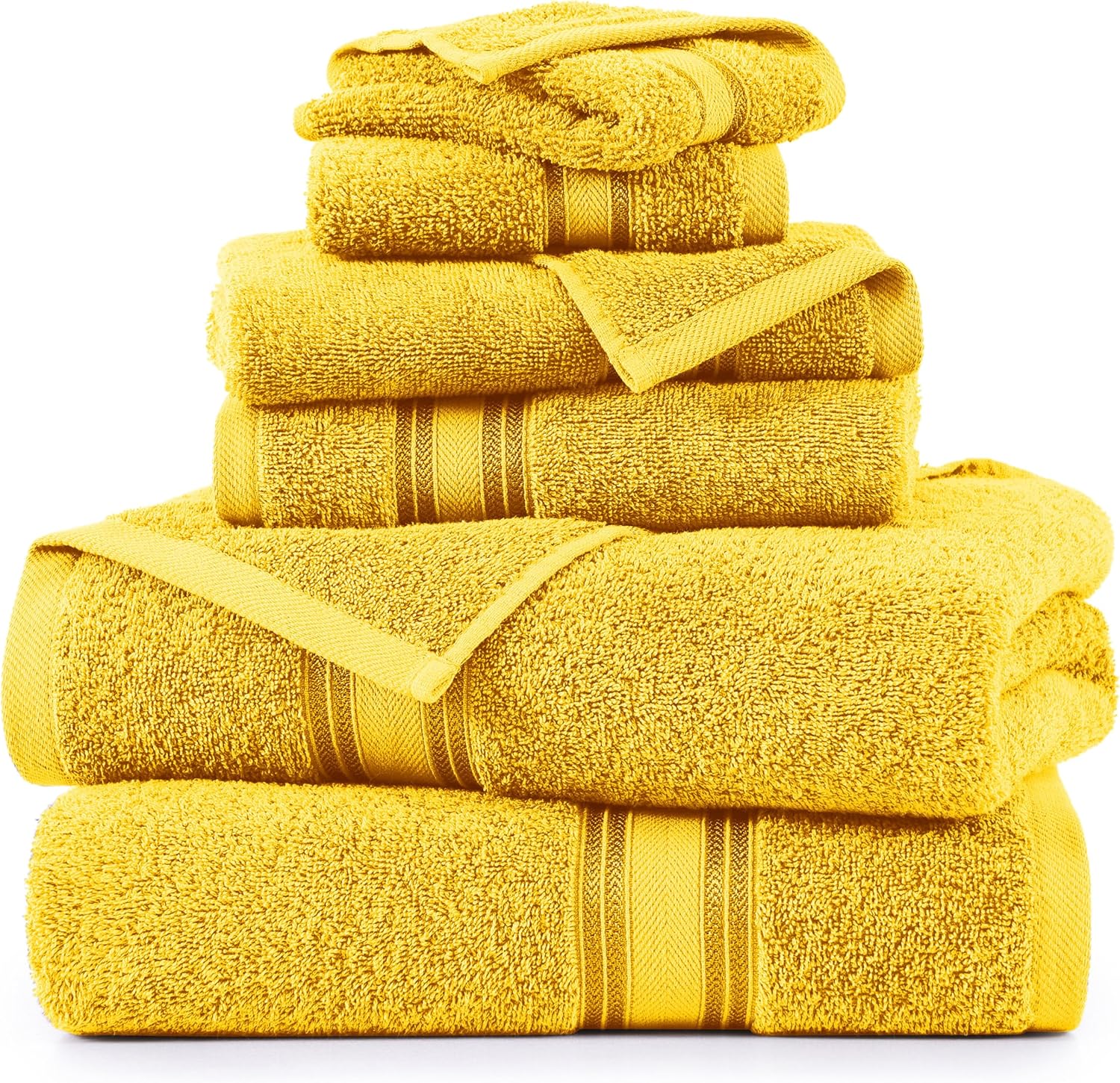 LANE LINEN Luxury 6-Piece Bath Towel Set - 100% Cotton, Zero Twist, Super Soft & Extra Absorbent - Includes 2 Bath Towels, 2 Hand Towels, 2 Washcloths - Mimosa