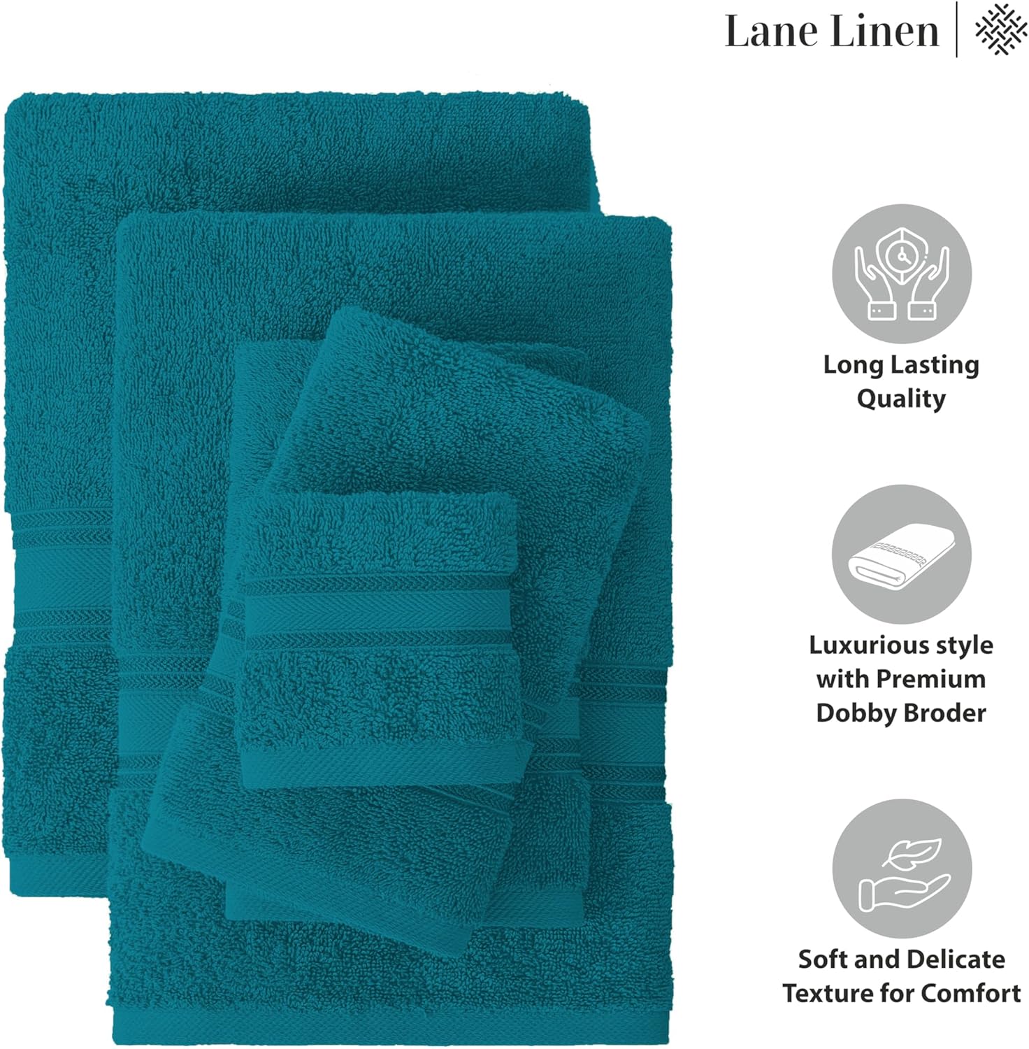 LANE LINEN Luxury Bath Towels Set - 3 Piece Set, 100% Cotton Bathroom Towels, Zero Twist, Quick Dry Absorbent Bath Towel, Super Soft, 1 Bath Towel, 1 Hand Towel, 1 Wash Cloths - Sea Port