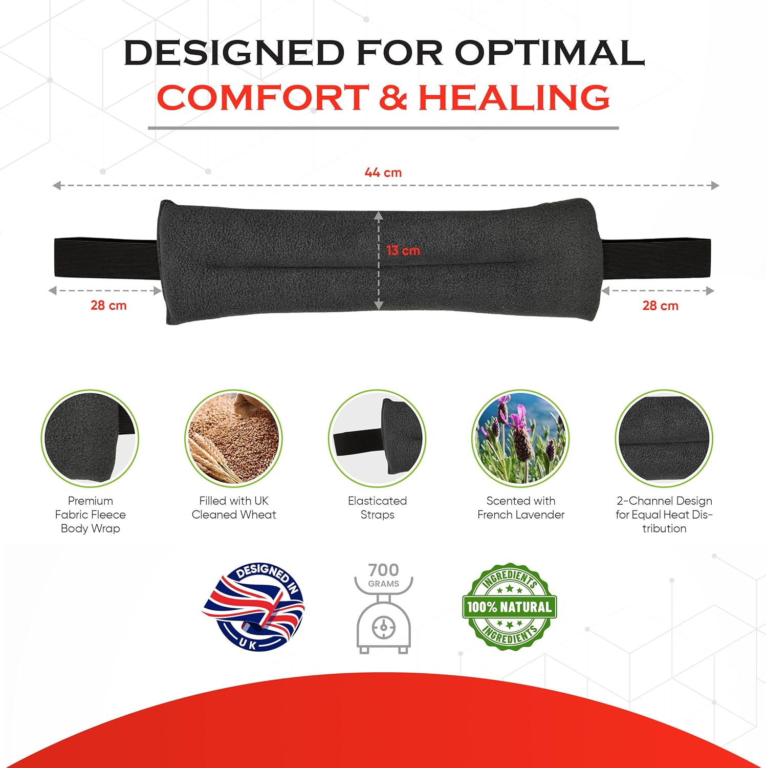 - Bask in Comfort and Added Aromatherapy: Handmade with care in the UK, this microwavable heating pad for back with elasticated strap is made from soft and durable fleece material. It’s specially infused with UK-grown wheat and aromatic lavender for that calming and rejuvenating effect.