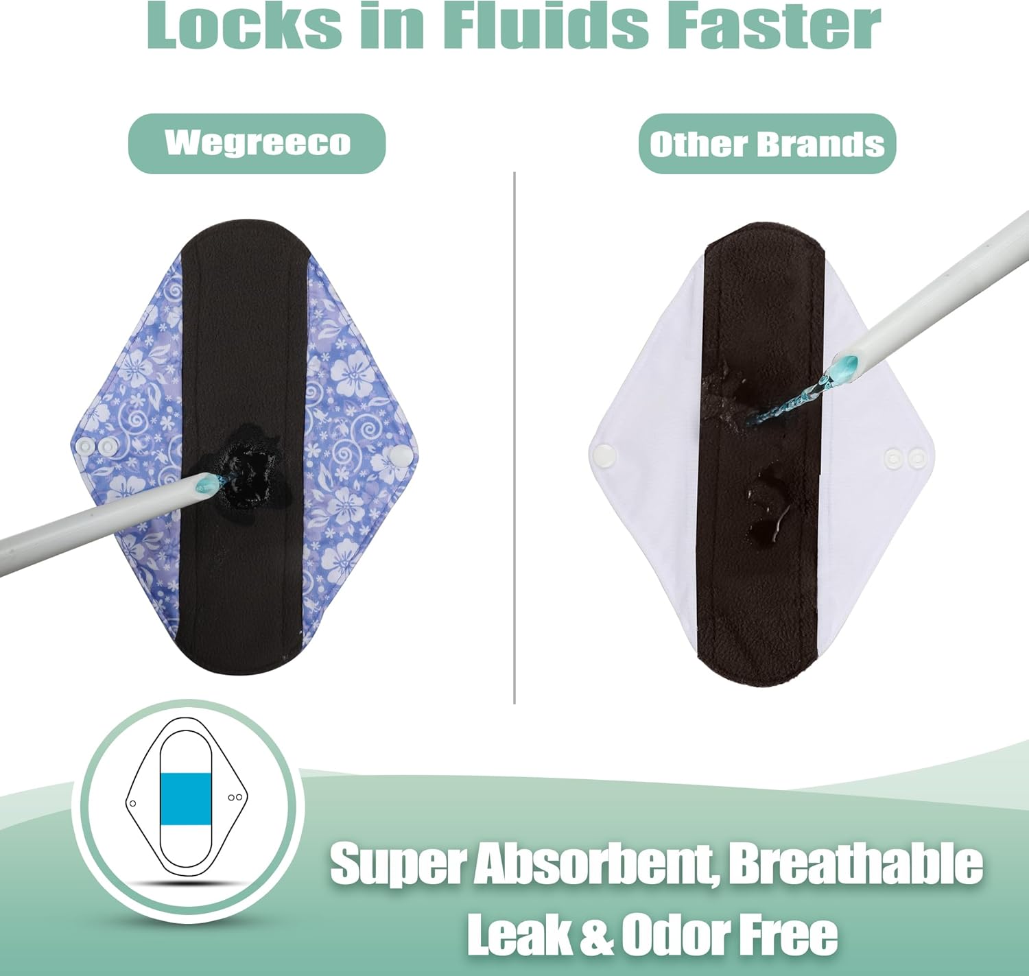 Wegreeco Reusable Menstrual Pads - Soft Cloth Sanitary Pads | Panty Liners - 6 Pack, 1 Cloth Wet Bag (in Full Bloom Flower, Medium)