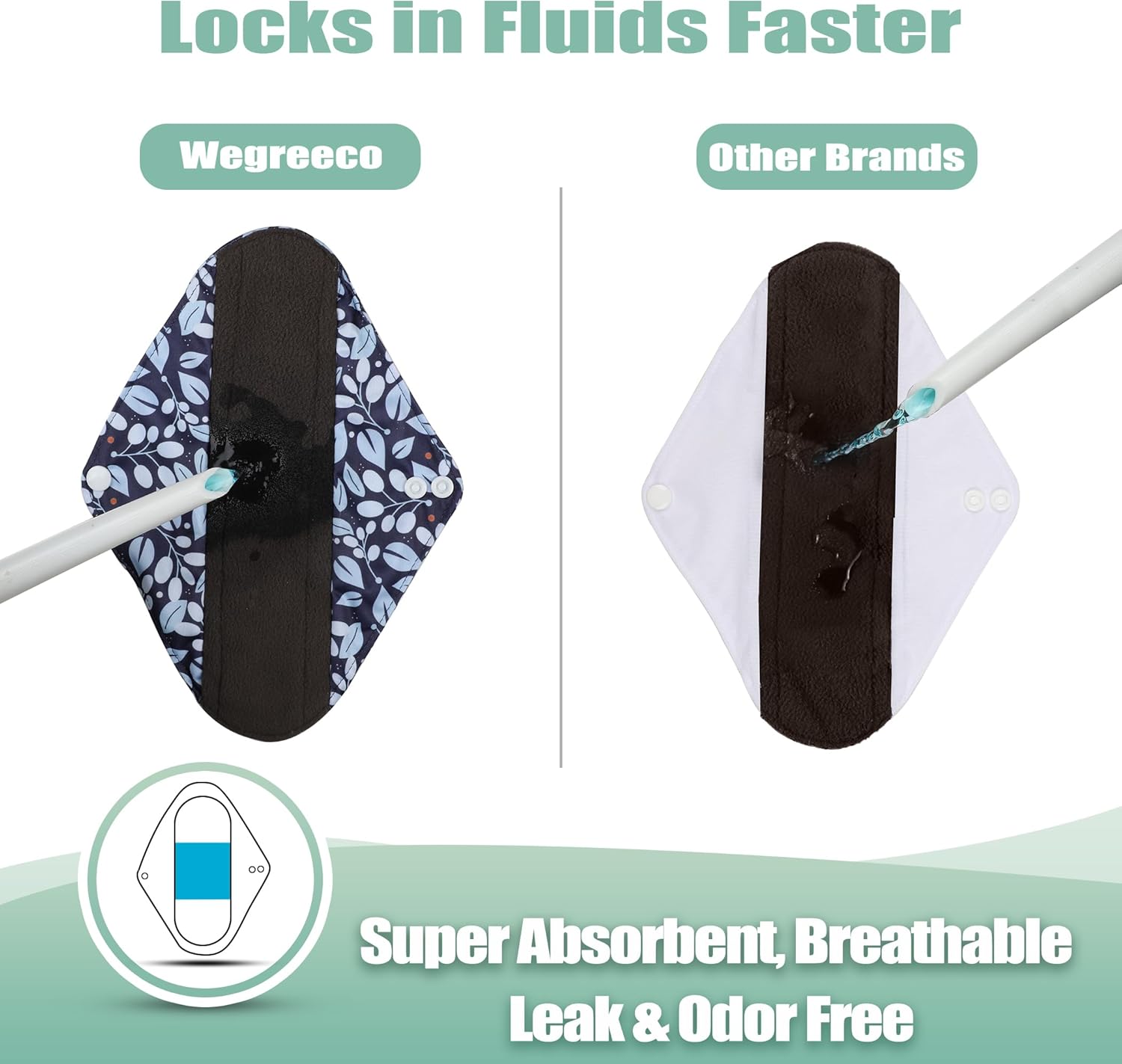 - CHARCOAL INNER LAYERS of these cloth menstrual pads is soft with maximum and have a stay dry surface.The dark color is forgiving of stains and Not only great at soaking up liquid, smells are neutralized.Middle layers microfiber make this reusable sanitary napkin super absorbent and a new trend in baby cloth diapers too.