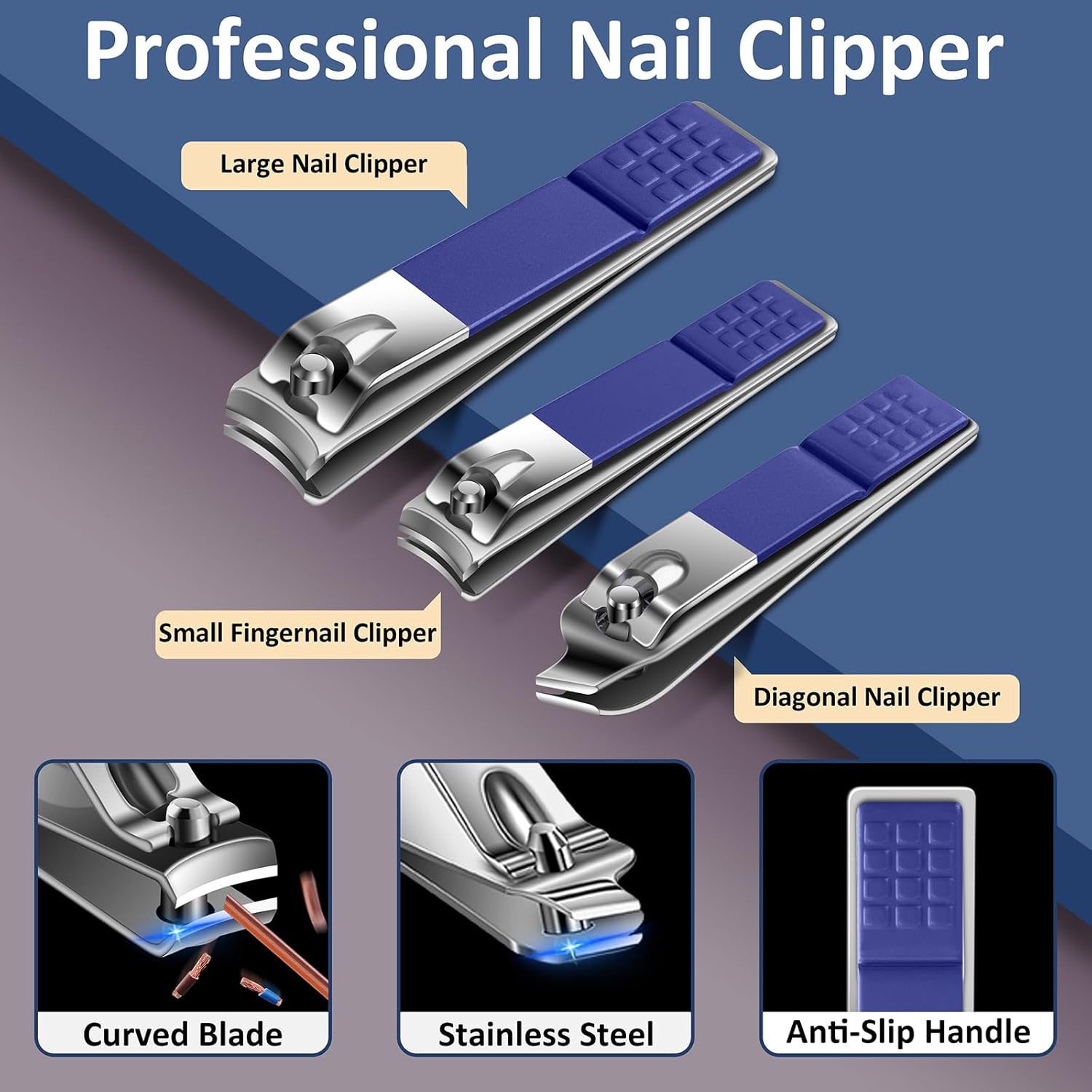 - Professional Nail Kit Manicure Set: Nail set manicure made of high-quality material. Manicure pedicure kit have 3 different nail clippers, including large nail clipper, small nail clipper and diagonal nail clipper. Nail clipper set are sharp and durable. Keep your nails trimmed and free of spills, cracks and hangnails.
