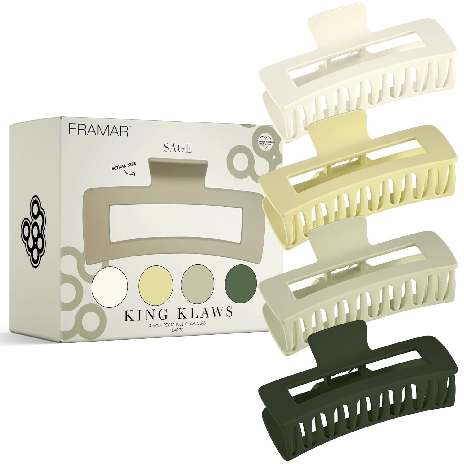 FRAMAR Green Hair Clips For Women Thick Hair - Extra Large Claw Clips for Thick Hair, Big Hairclips, Hairclips For Girls, Sage Green Accessories, Pinzas Para El Cabello - 4 Pack