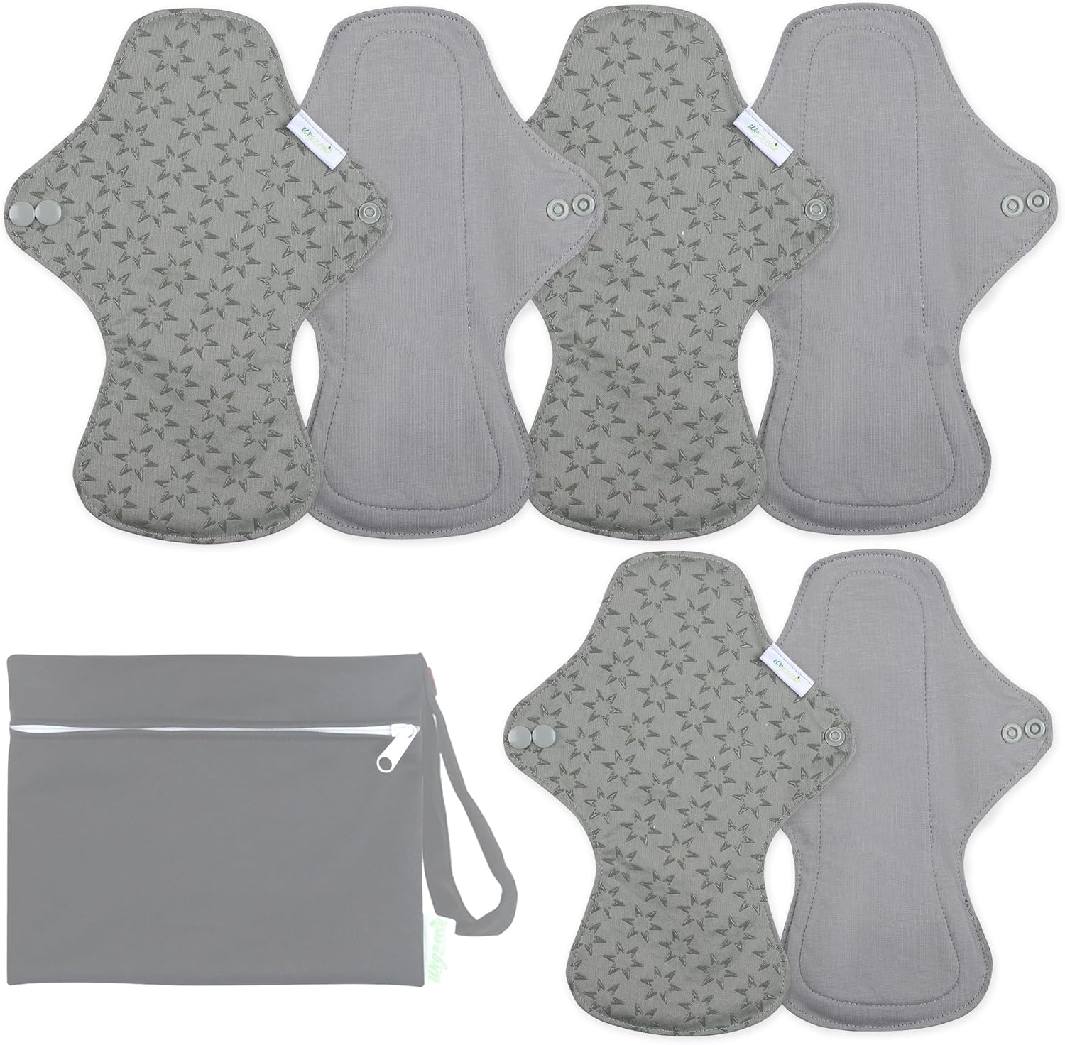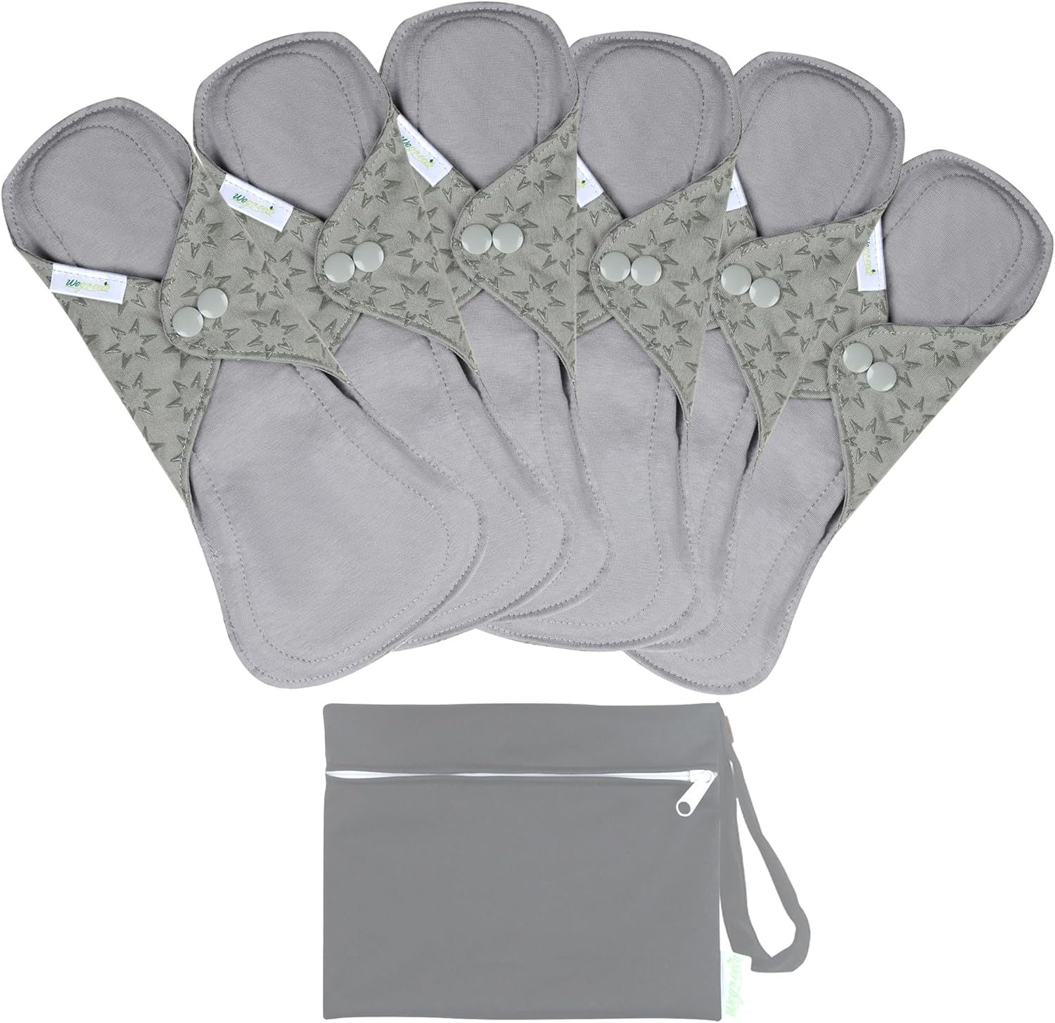 wegreeco 6 Pcs Reusable Menstrual Pads, Ultra Absorbent Cloth Pads for Heavy Flow, Sanitary for Teens,Women, Nonslip, Grey Inner, Grey Outer, Large