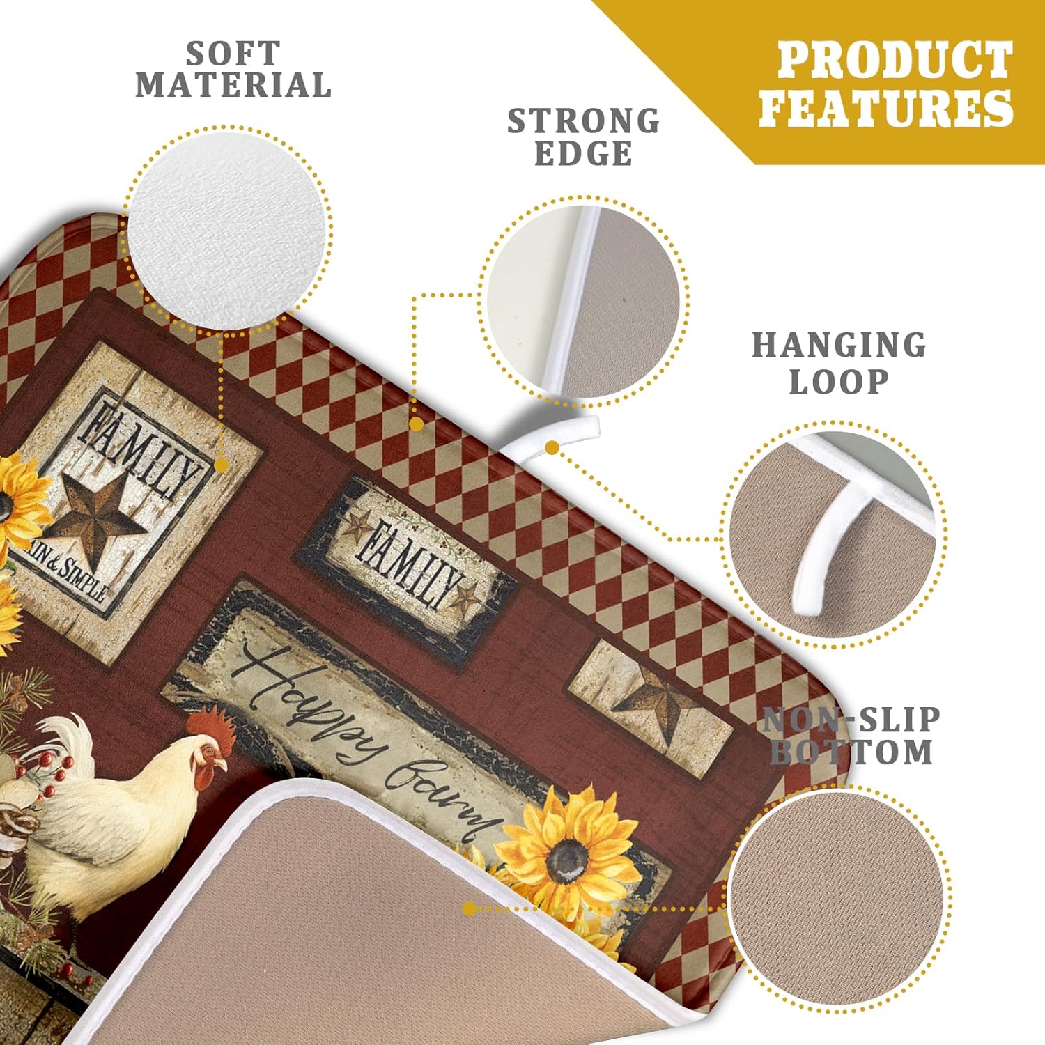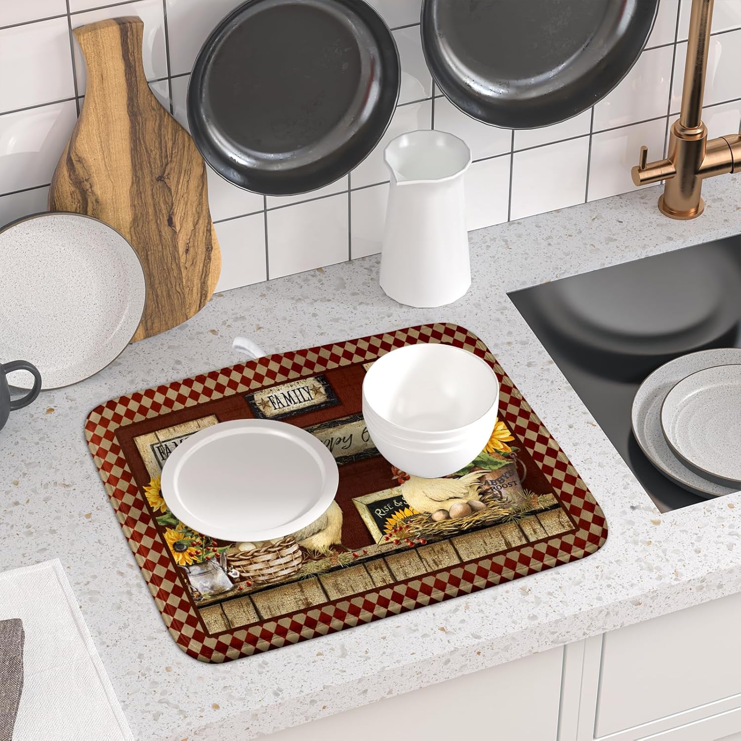 Vintage Rooster Dish Drying Mat 16x18 Inch Farmhouse Chicken Dish Drainer Pad Microfiber Absorbent Fast Dry Kitchen Counter Accessories