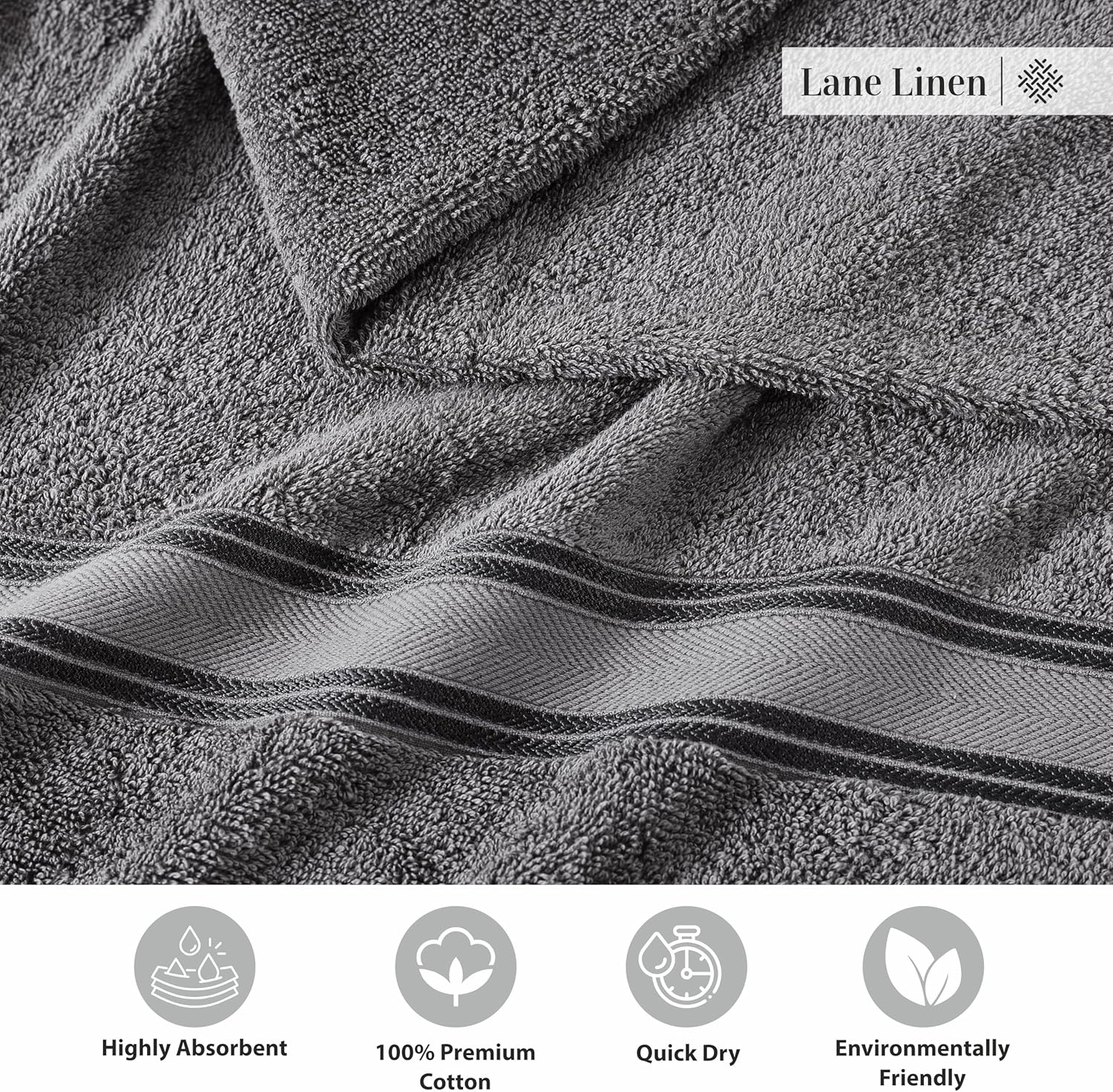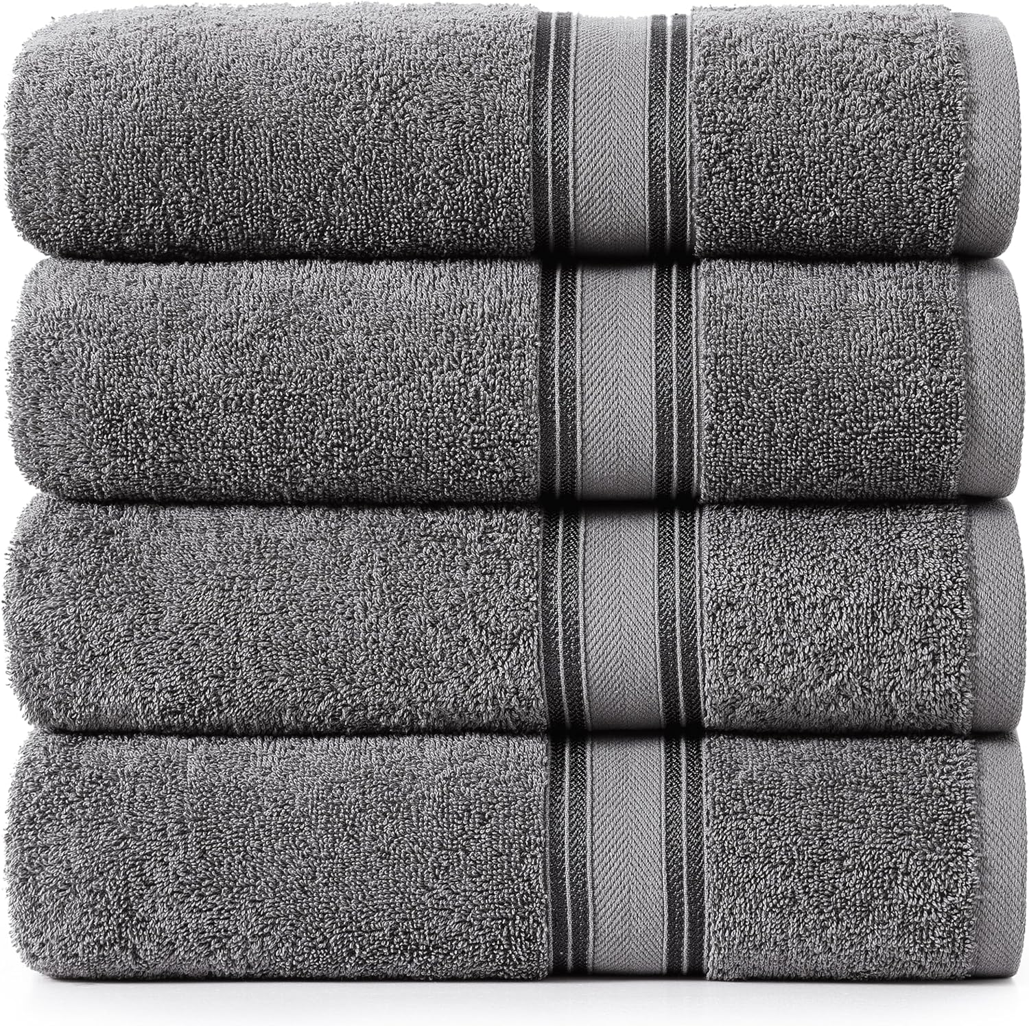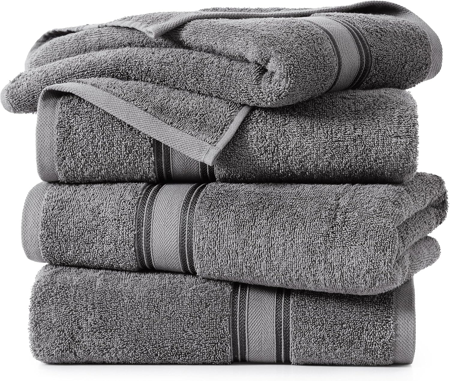 LANE LINEN 100% Cotton 4 Pack Bath Towels Set (28"x54") - Zero Twist, Large Cotton Towels for Bathroom - Quick Dry, Soft & Absorbent Bath Towel Set - Remains Soft After Multiple Washes - Cool Grey