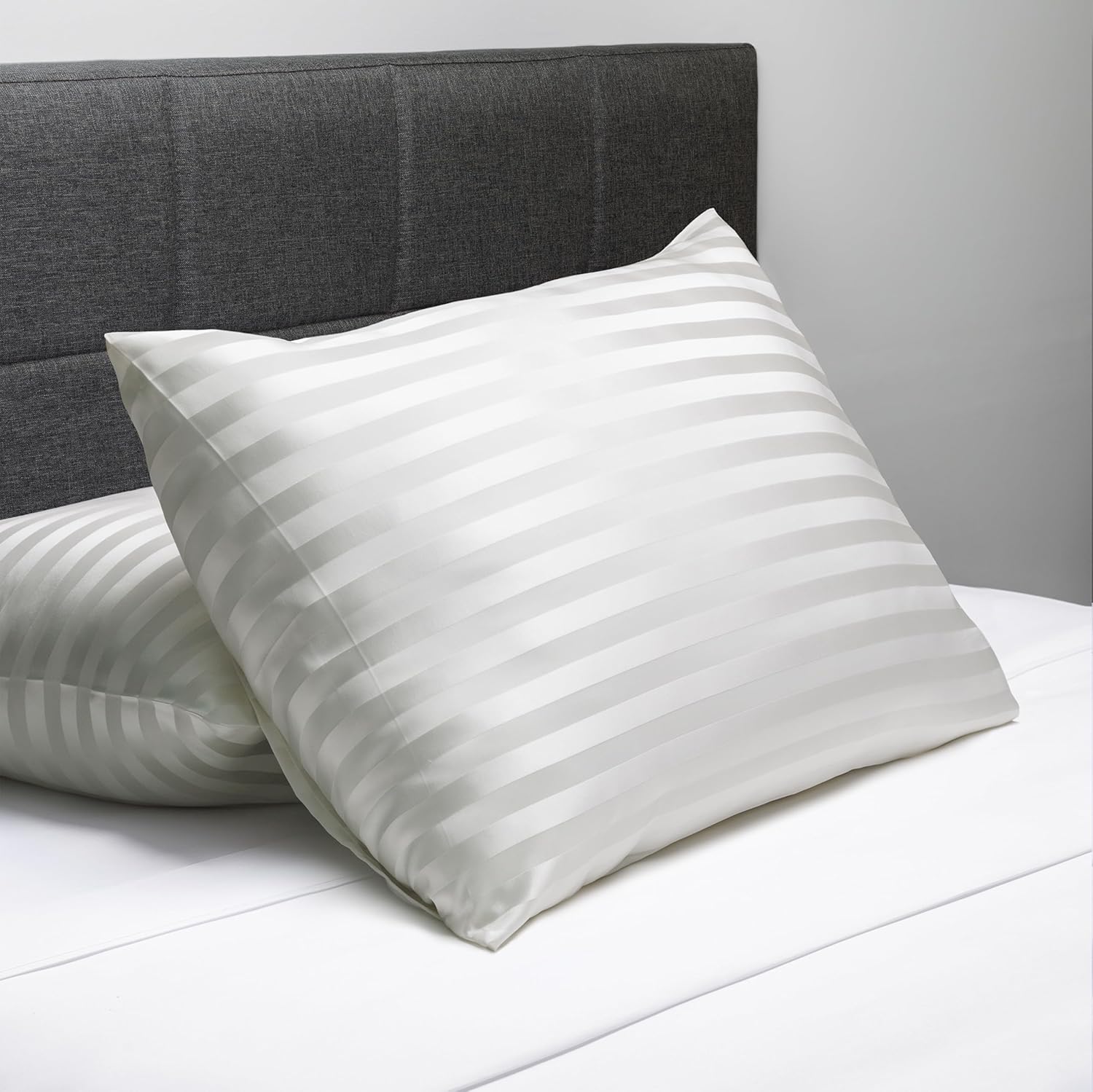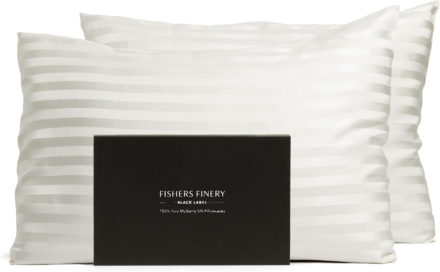 Fishers Finery 30mm 100% Pure Mulberry Silk Pillowcase 2 Pack, Quality Tested (White Stripe, Queen, 2 Pack)
