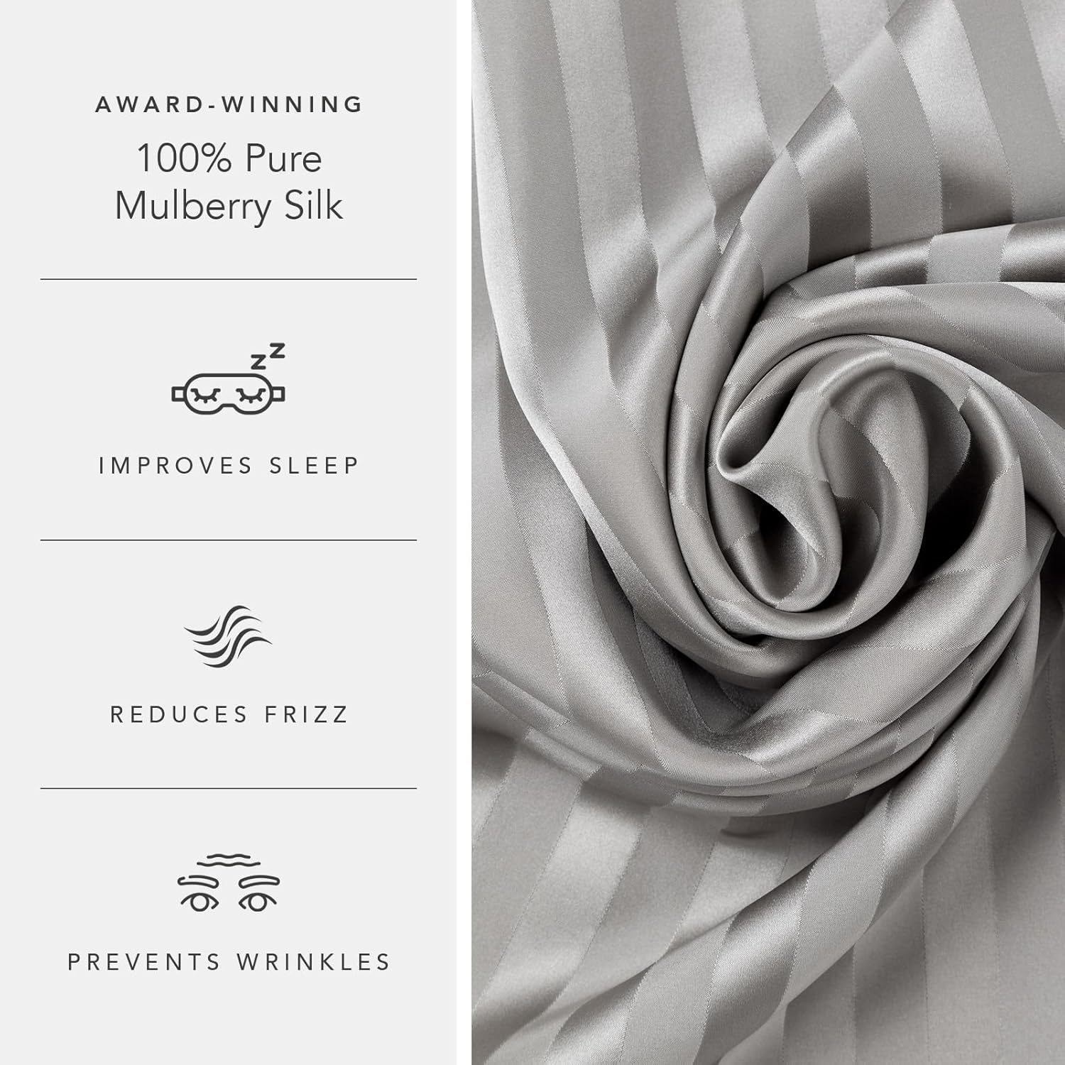 Fishers Finery 30mm 100% Pure Mulberry Silk Pillowcase Set, Quality Tested (Gray Stripe, King, 2 Pack)