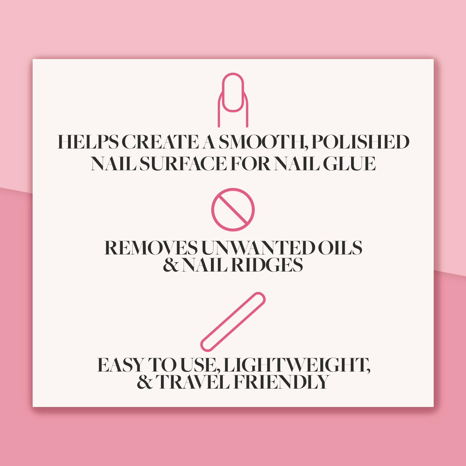 - Make Your Press-On Nails Last Longer: By using the multisided nail buffer, the Glamnetic Brush-On Nail Glue will adhere to your natural nails more than ever before. Additionally, it is highly effective to remove unwanted oils & nail ridges.