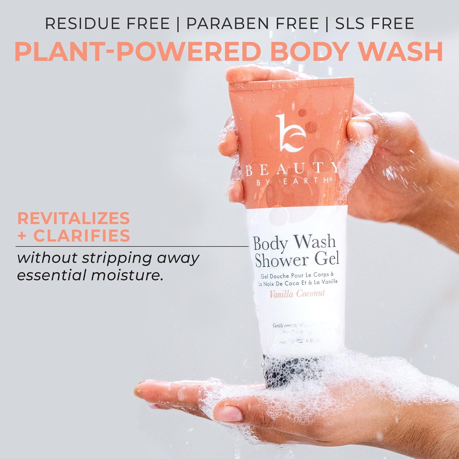 Vanilla Coconut Shower Gel Body Wash - USA Made with Organic & Natural Ingredients, Moisturizing Cleansing Gel for Women, Gentle & Non Toxic Daily Wash for Sensitive Skin, Clean Body Soap Liquid