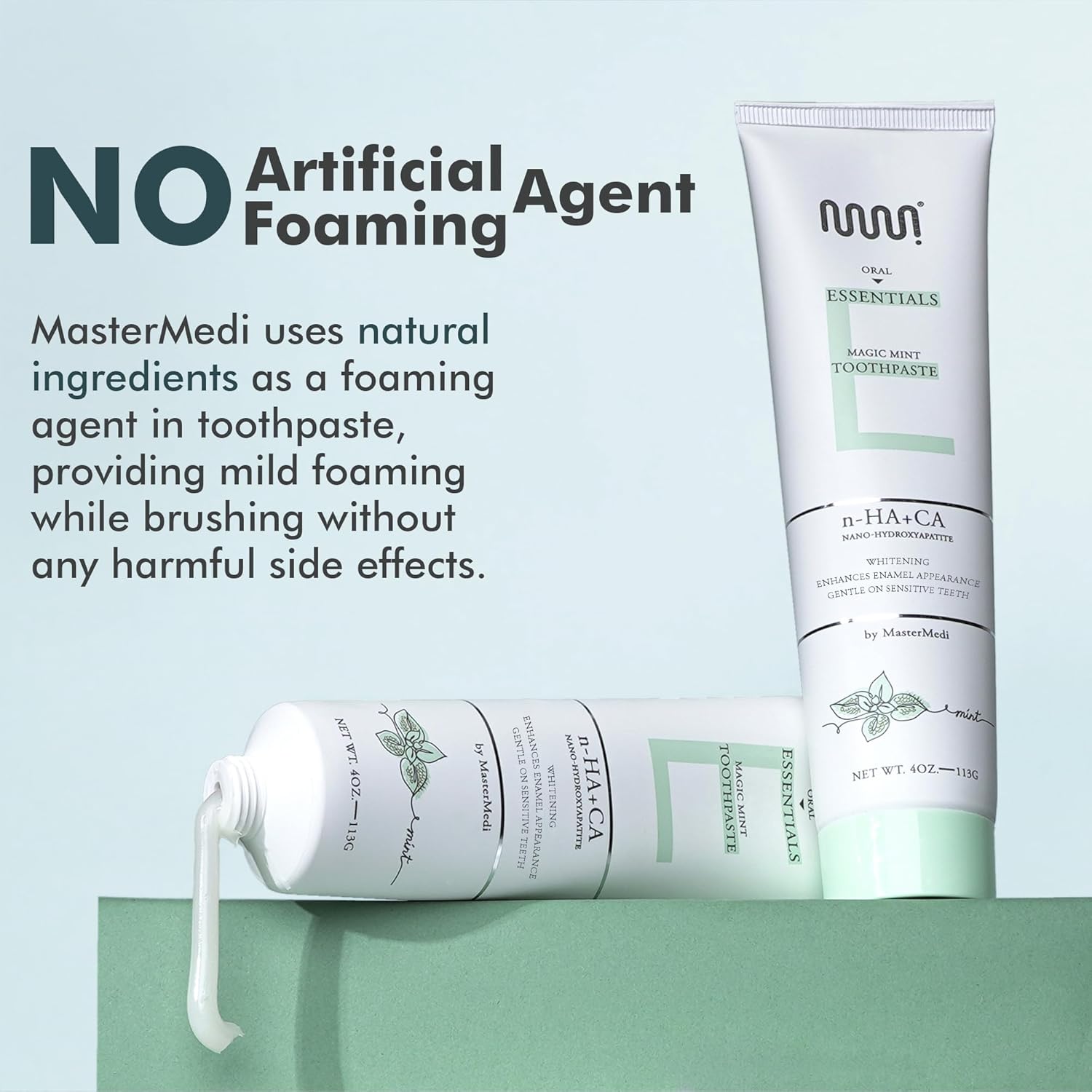 MasterMedi Nano Hydroxyapatite Toothpaste (Inspired by 10% nHA Formulas), Fluoride-Free, Whitening, Sensitive Teeth Care, Enamel Support, SLS Free, Xylitol, Magic Mint, 4 Oz (Pack of 3)