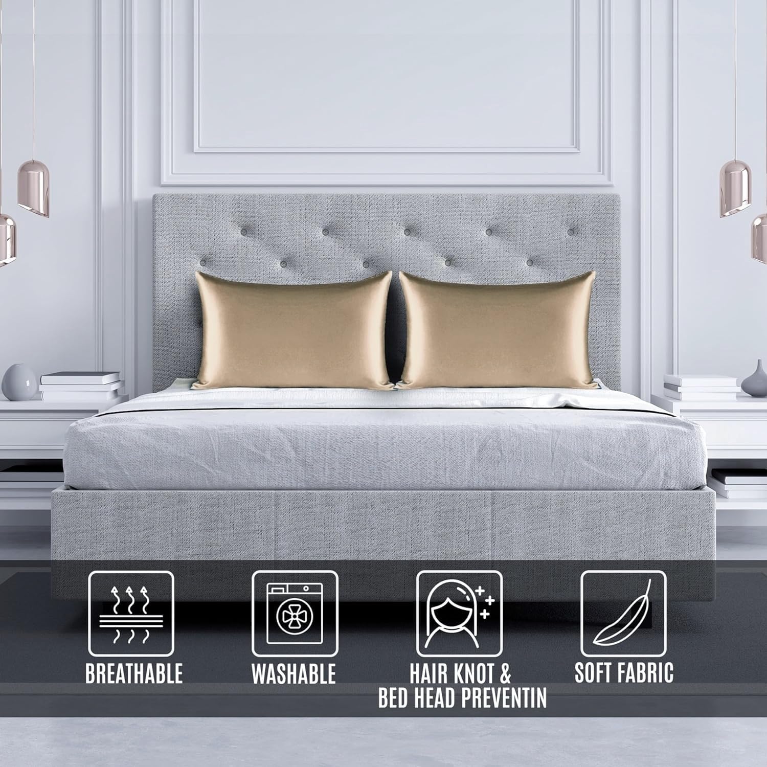 - 【100% Polyester Satin】: Satin Pillowcases are made of 100% satin polyester fabric for optimal softness and easy care used is as soft as a silk pillowcase. High-quality satin is more sturdy than silk pillowcases at a reasonable price - Glorious and luxurious satin pillowcase provides the smooth and resilient feeling to help you establish a sound sleep all night.