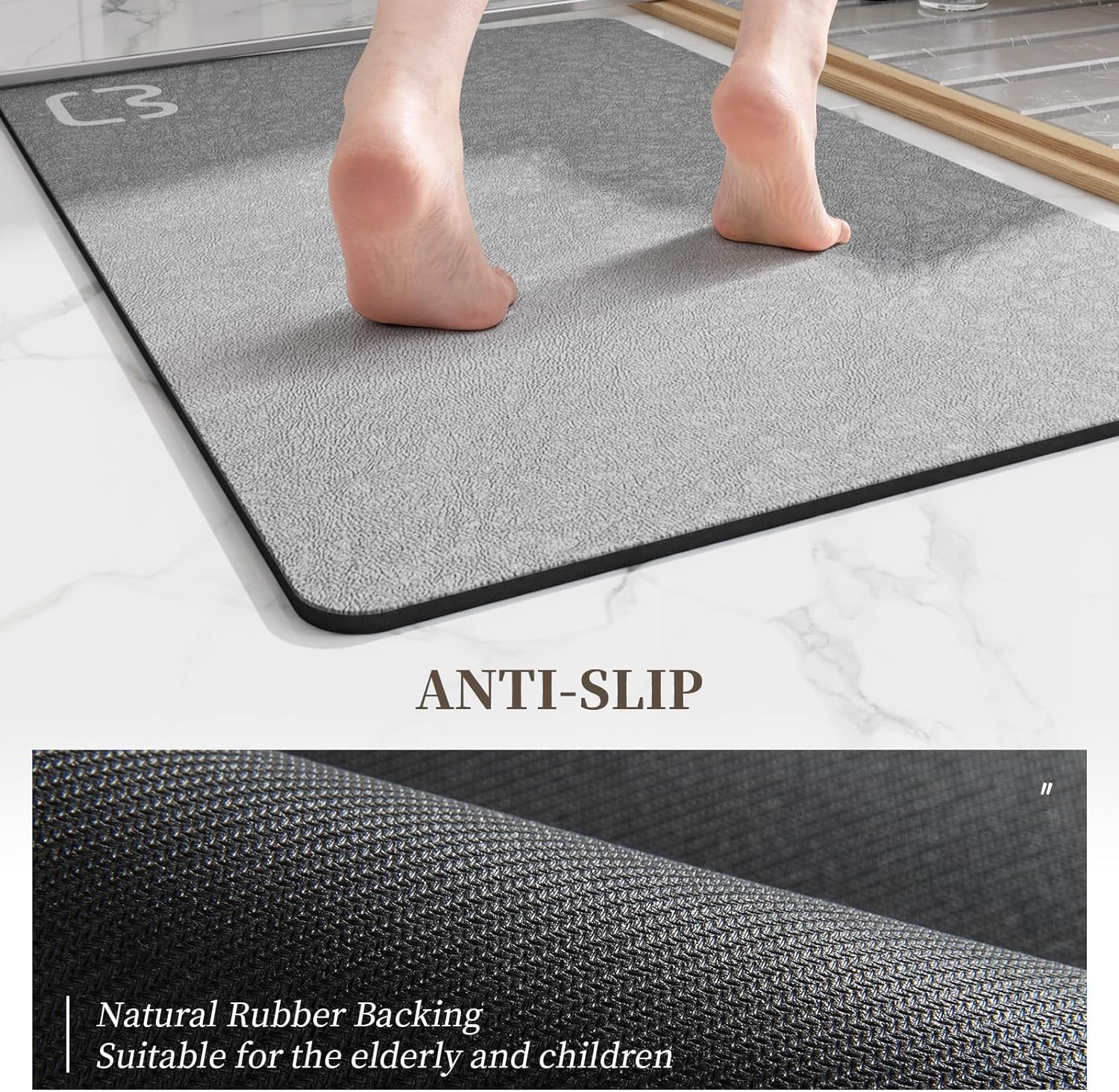 - 【Quick Absorbing & Fast Drying】 The stone bath mat for bathroom is a flexible stone bath mat made of diatom mud material, which is easier to dry than other normal plush bath mats. This water absorbing bath mat is designed to absorb water from wet feet immediately, watermarks will disappear within few minutes. Enjoy a dry and comfortable experience after your shower.
