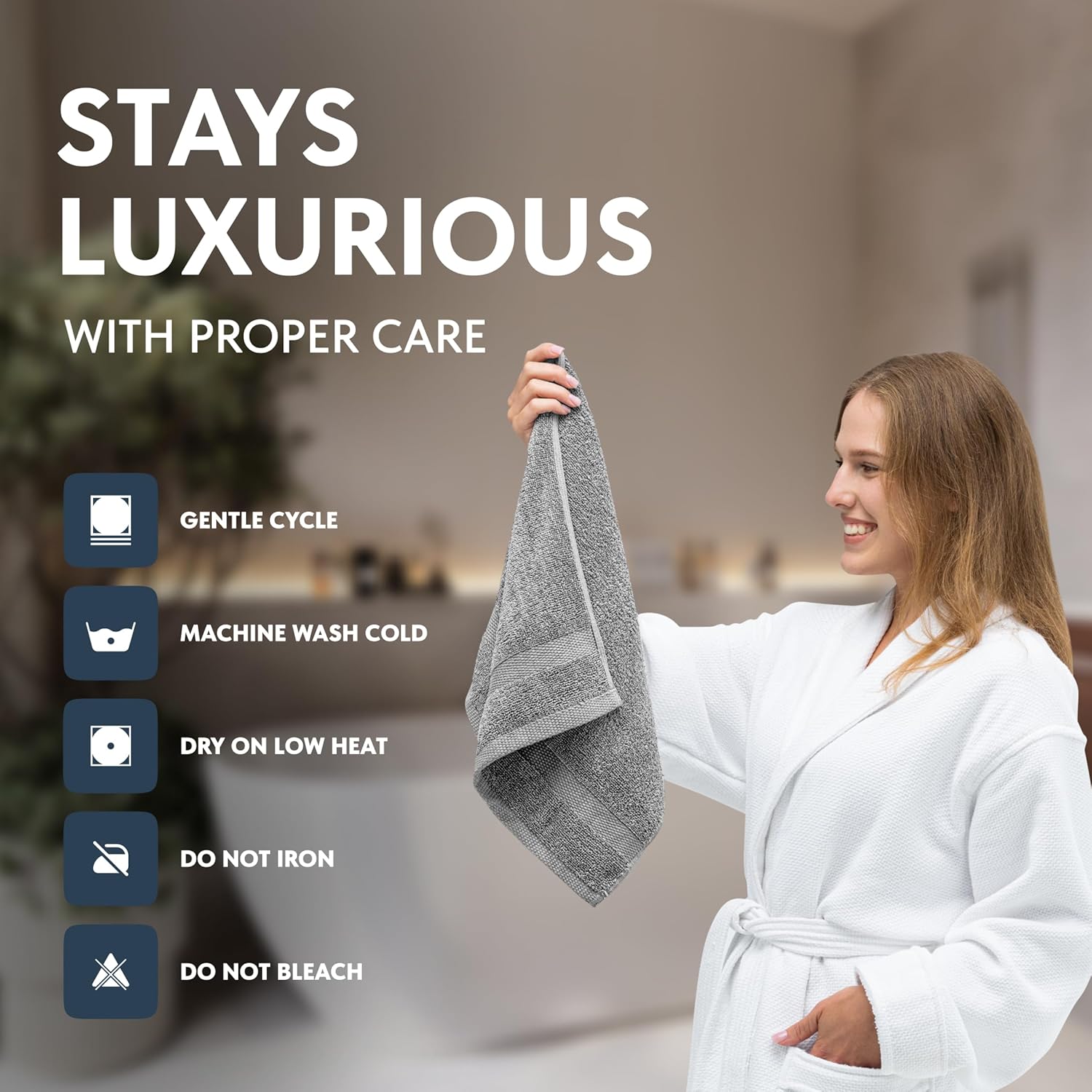 - CARE INSTRUCTIONS - These are bleach safe towels, Simply toss them in the machine and wash. After the first wash, these towels will fluff up beautifully, feel fresh and soft. These towels are specially processed to make the dryer take less time, thus saving time and energy costs. Keep The Lint Trap Clean. Some Lint May Be Observed in First Wash. This Will Not Affect The Look, Feel or Performance of Towel.