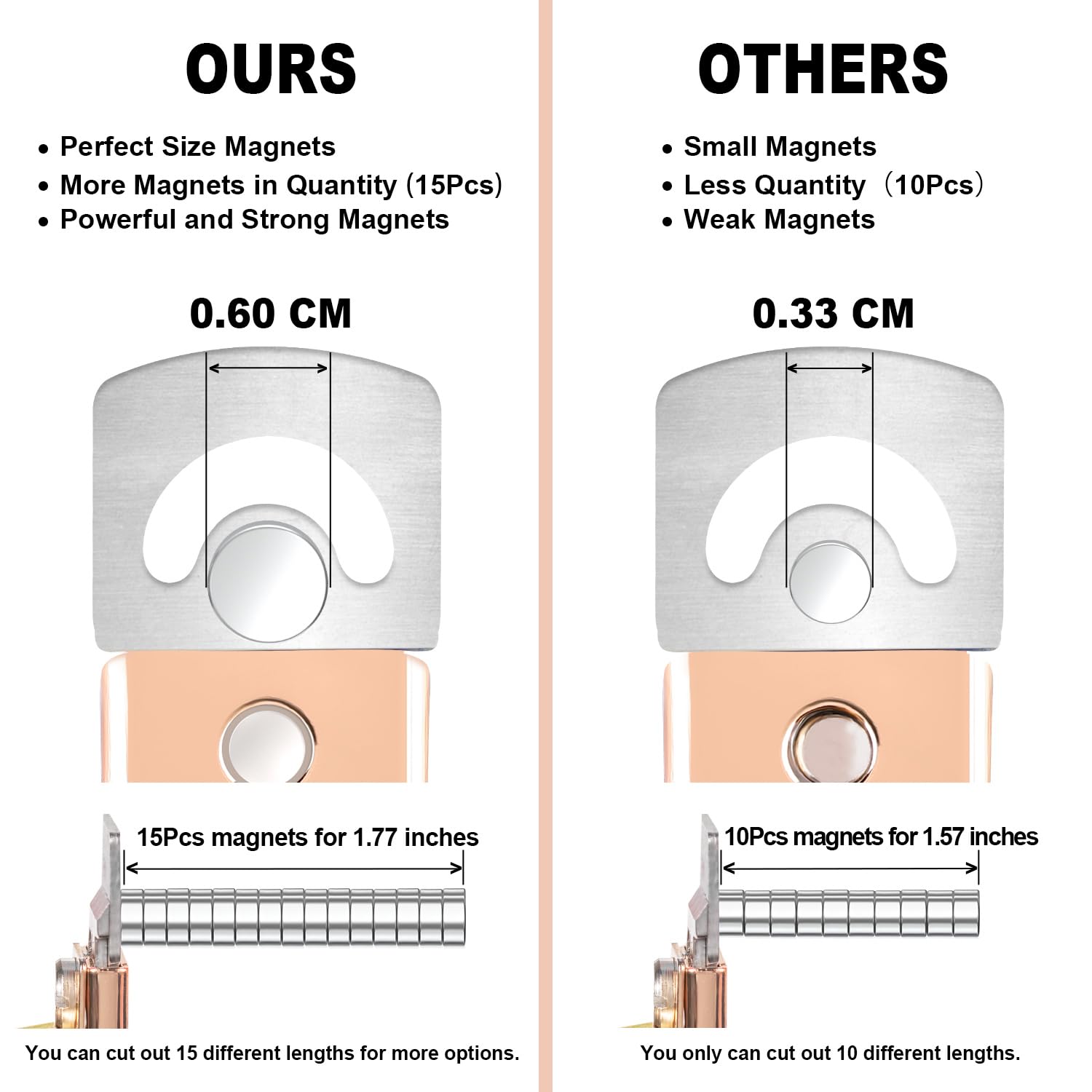 - ✂️Powerful Magnet Sizers -- Easiest nail hack to get your tips the same length in secons!Our magnets have a total length of 1.6 inches, the height of each pcs is 0.13 inches, you can adjust the desirable length by using different numbers of magnets.If you are worried that the magnets will move, you can fix the first magnet with glue on the clipper.