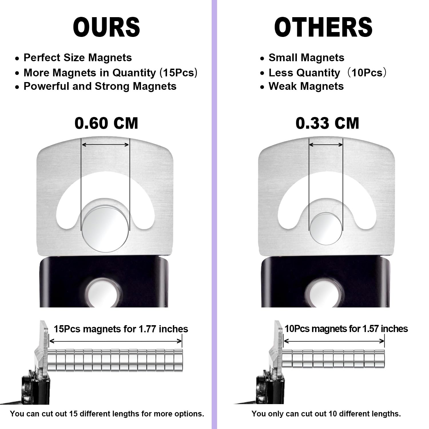 - ✂️Powerful Magnet Sizers -- Easiest nail hack to get your tips the same length in secons!Our magnets have a total length of 1.6 inches, the height of each pcs is 0.14 inches, you can adjust the desirable length by using different numbers of magnets.If you are worried that the magnets will move, you can fix the first magnet with glue on the clipper.