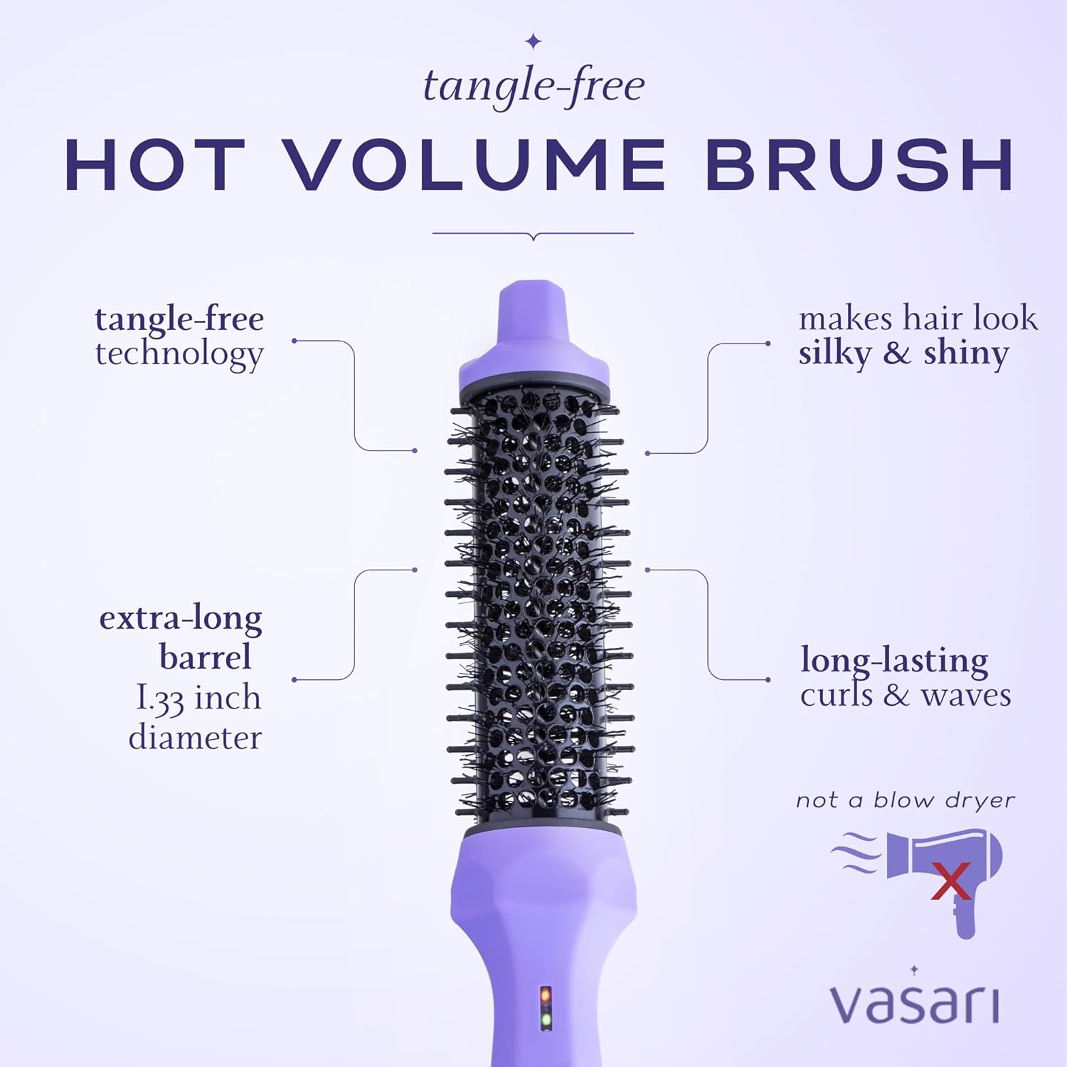 - 💟 TANGLE-FREE STYLING — This curling iron brush has extra-long bristles that grab and gently glide through the hair. No more painful catching and tugging.