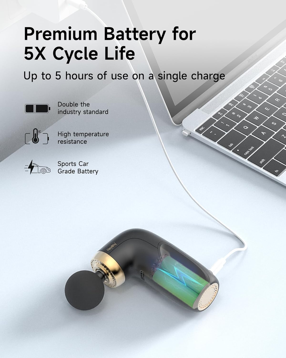 - 【Ultra-Superior 3C Power Battery】This handled muscle massager gun is specially equipped with 3C Power Battery. Compared with other products, it has 3X discharge rate for power supply and 5X battery cycle life. At the same time, 800mAh battery capacity allows it to be used continuously for 5-7 hours.
