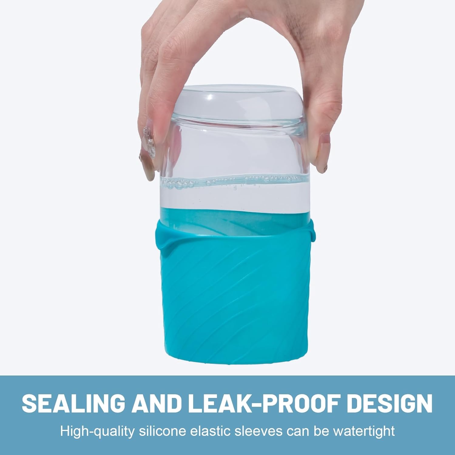 - EASY TO INSTALL: Put this leak-proof sleeve on bottles that are prone to leakage. It can be firmly fixed on the containers of toiletries and other beauty and personal care products. The silicone material can absorb the bottle to prevent leakage during travel and contamination of your Other items.