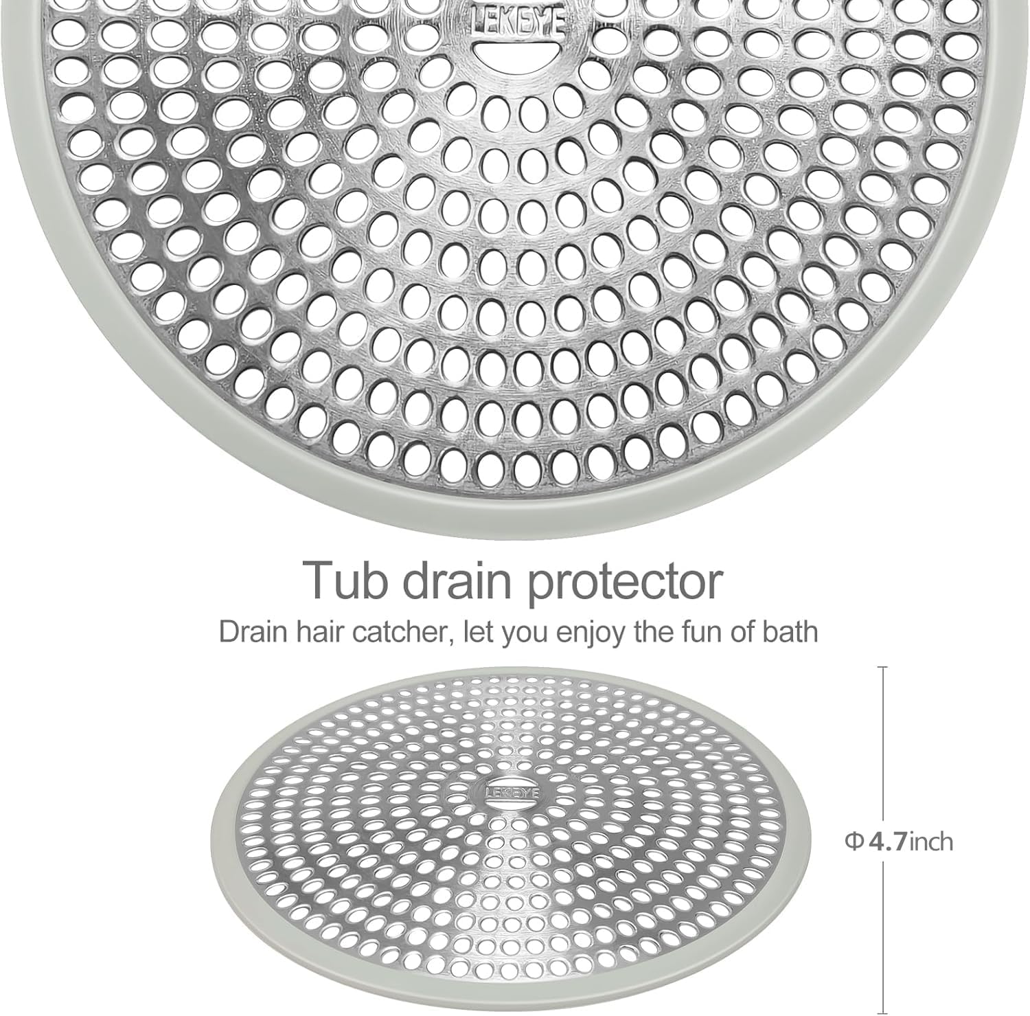 LEKEYE Shower Drain Hair Catcher | Strainer | Shower Stall Drain Cover | Bathroom Drain Protector Stainless Steel and Silicone(Light Gray)
