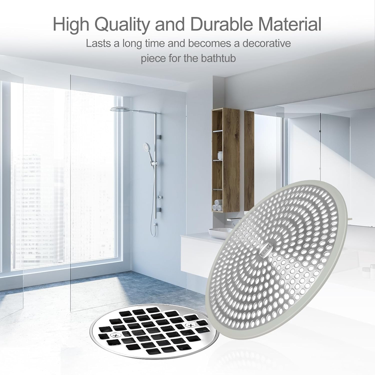 - Combining silicone rust, proof stainless steel is easy to clean, This product is 4.7 x 4.7 x 0.4 inches. Please measure the drain before purchasing.