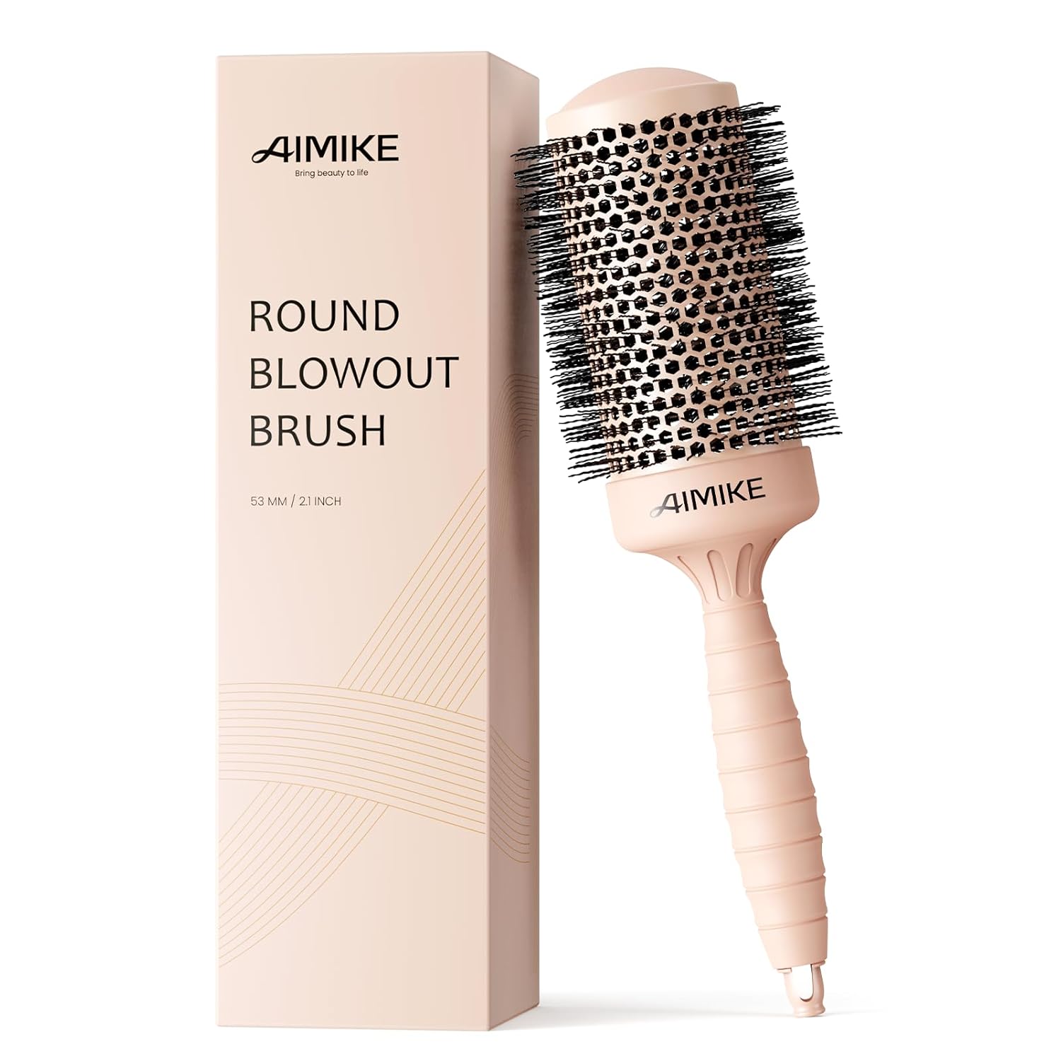 AIMIKE Round Hair Brush, 2.1 inch Nano Ion Thermal Ceramic Tech, Large Round Brush for Blow Drying & Styling, Maximum Volume and Shine, Barrel 2.1 inch, for Thick Curly Hair, Unisex