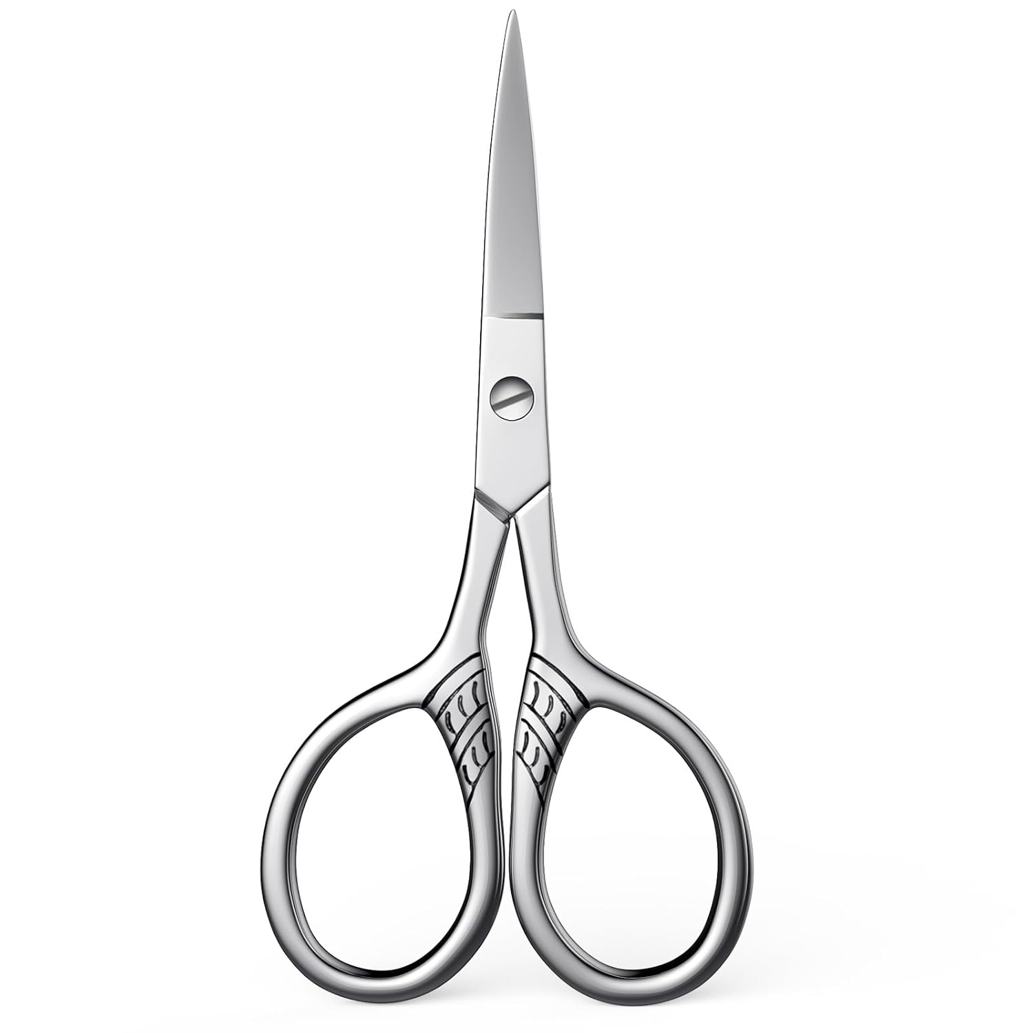 - PROFESSIONAL DESIGN- Stainless SteelVintage Style Grooming Scissors, Perfect for Personal Care Facial Hair Removal and Ear Nose Eyebrow Trimming Stainless Steel Fine Straight Tip Scissors Men