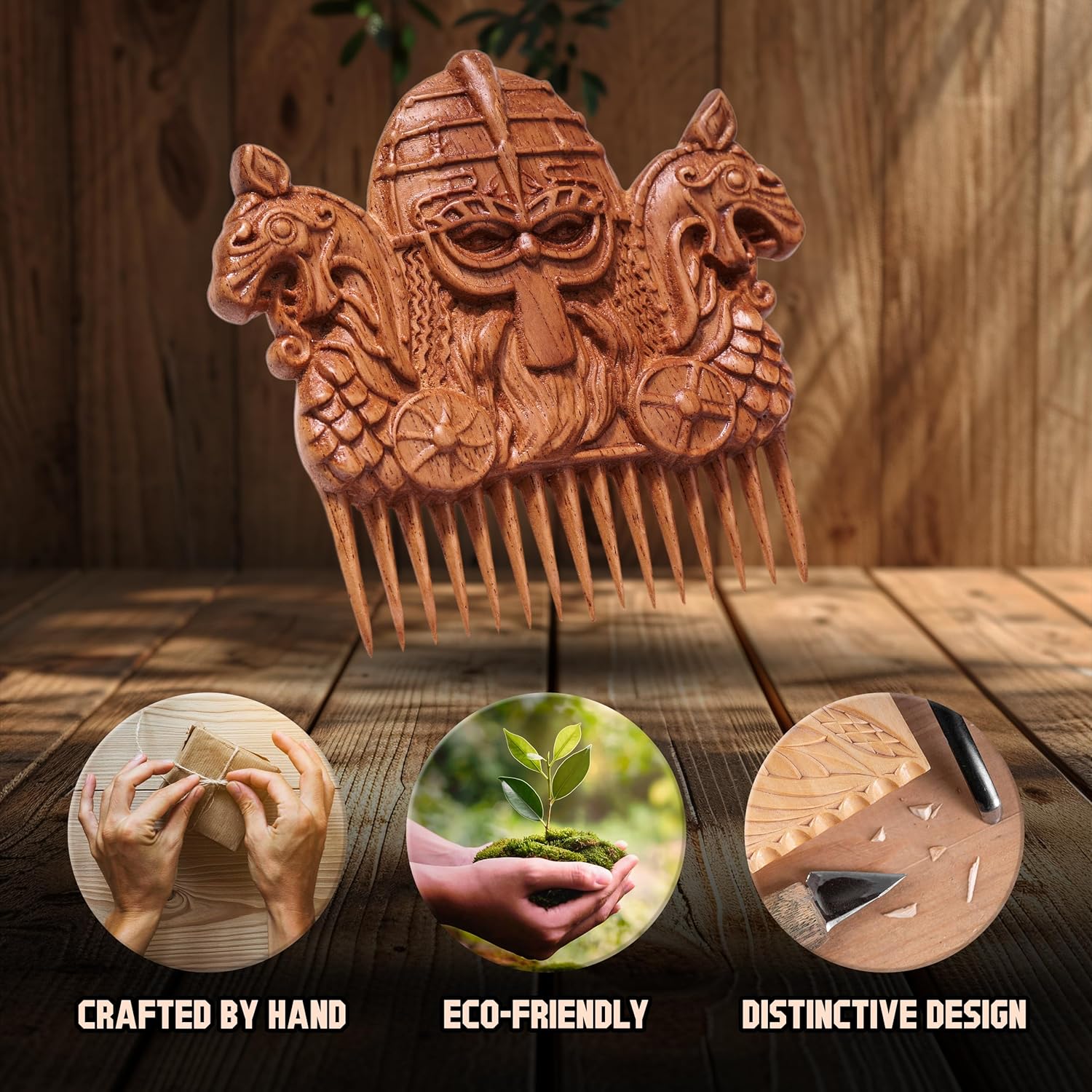 - Intricate Vi.king Patterns: Inspired by Norse mythology and Vi.king art, the patterns on each comb are carefully hand-carved, making every piece a unique testament to the Viking spirit.