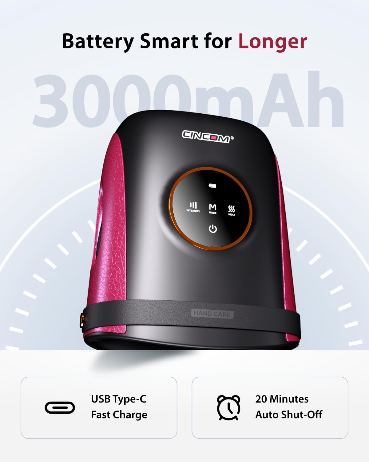 - CINCOM Hand Massager : Multiple Massage Modes to enjoy a variety of customizable settings, including kneading, air compression, and soothing heat to relieve stress and discomfort in the palms, fingers, and knuckles