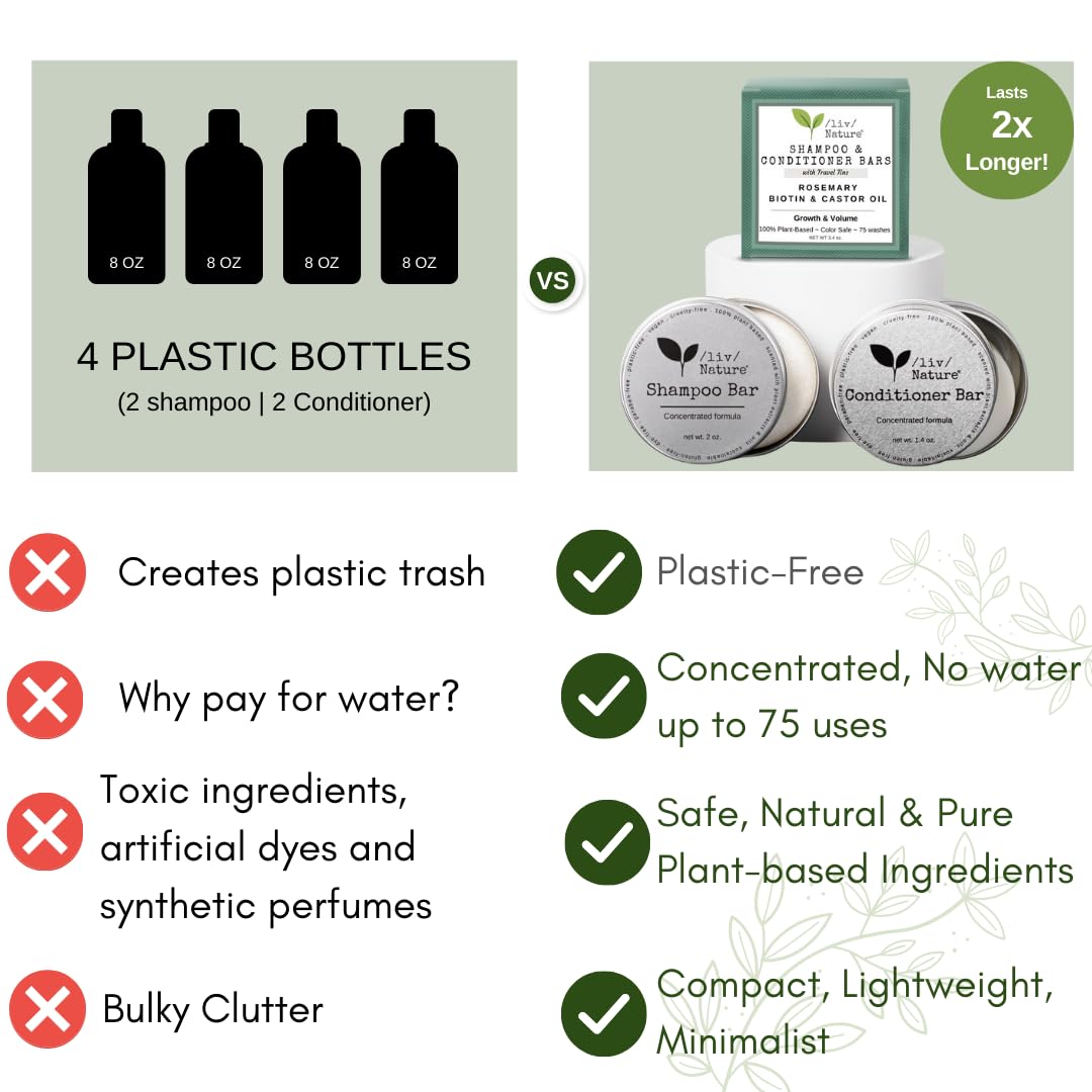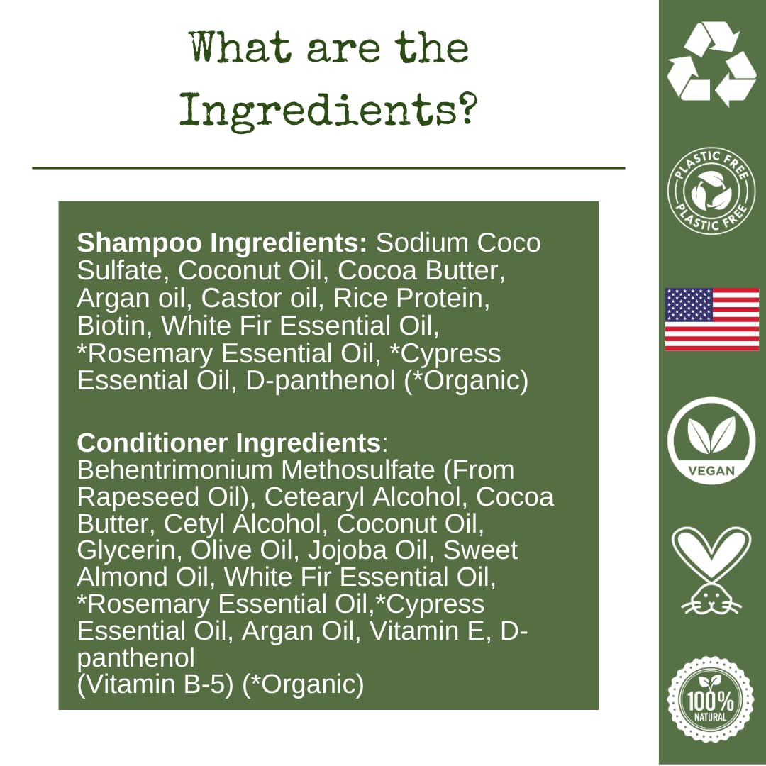Shampoo Bar and Conditioner with Travel Tins | Rosemary, Biotin, Castor Oil | Growth, Volume, Thickening | For Thinning Hair | USA 2-pk