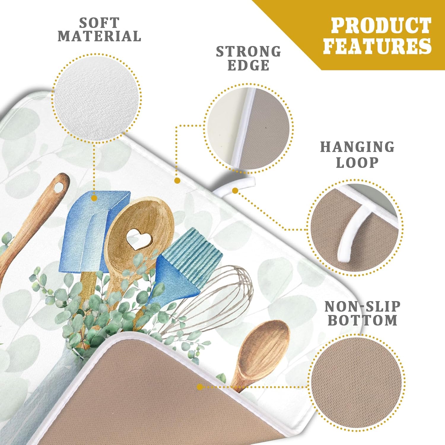 - 【Wide Usage】The dish drying mat designed with kitchen tool pattern, it is beautiful, soft, and durable. Not only a dish drying mat, cup mat, heat resistant mat, you can also use it as a kitchen countertop insulation mat. It is also a good choice to use it as a pet mat, picnic mat.