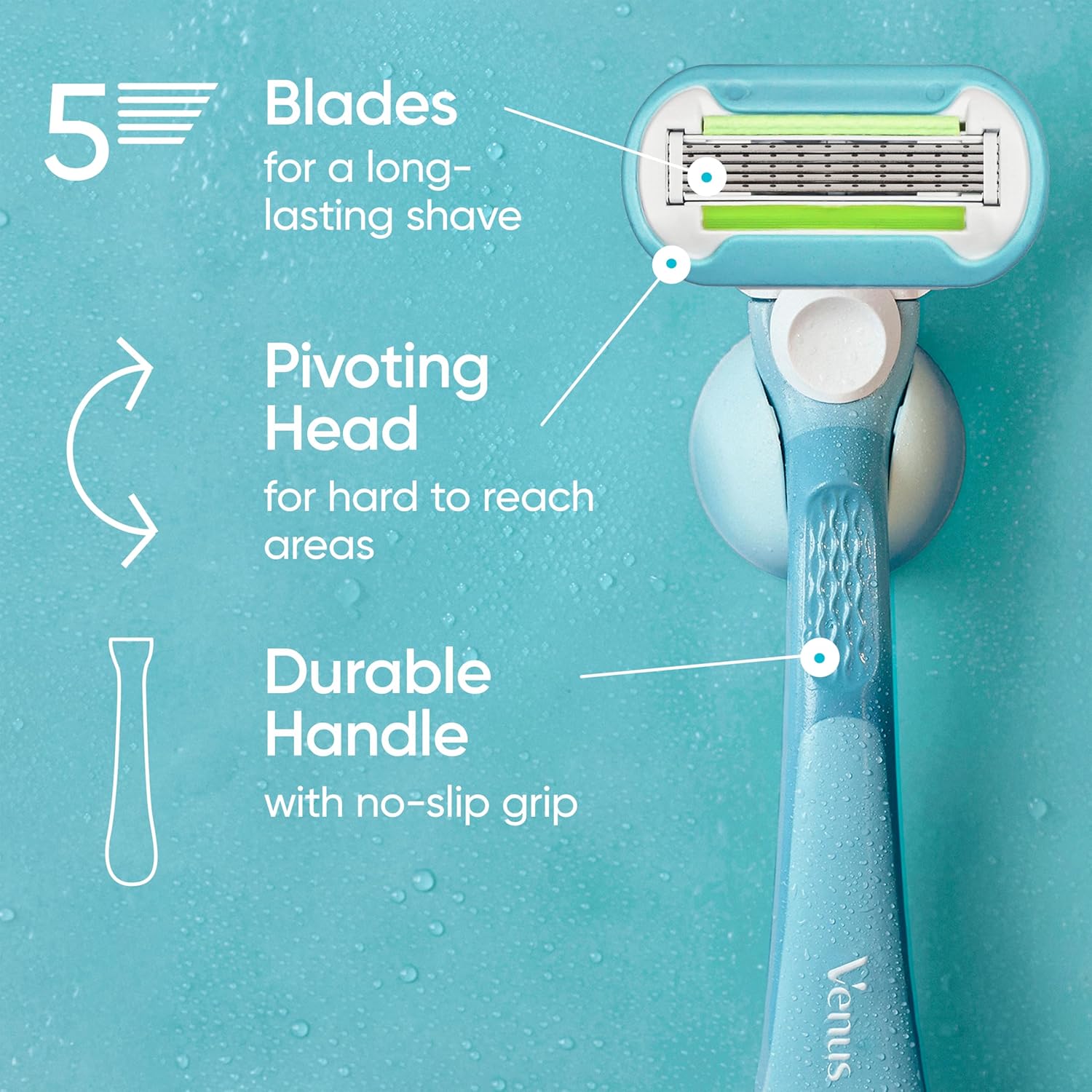 Gillette Venus Extra Smooth Razor for Women, Includes 1 Reusable Razor Handle + 4 Refills, 5-Bladed, Ergonomic No-Slip Gel Handle and Shower Holder