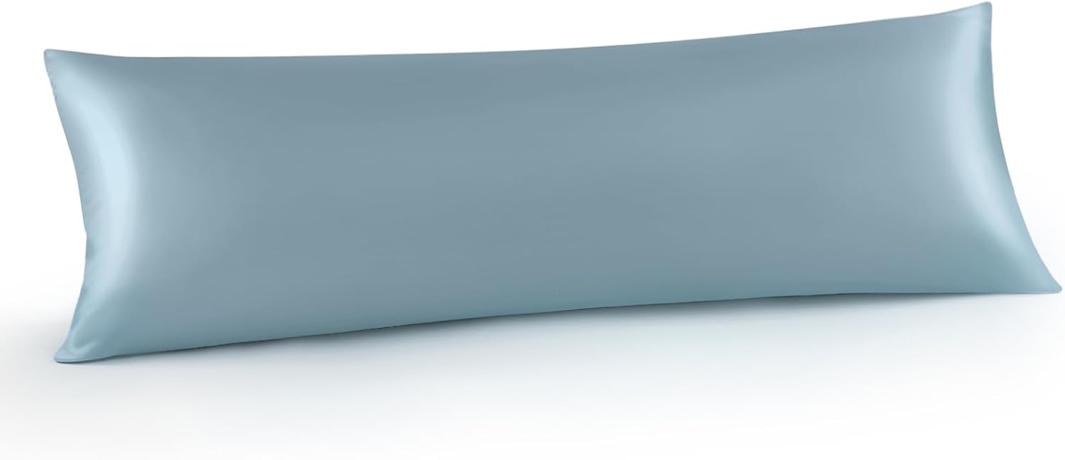 INFIIXSO Body Pillow Cover with Zipper, Luxury Mulberry Silk Body Pillow Case 20x54 Inches, Ultra Smooth and Soft Cooling Long Pillowcase, Gift for Women, Men(Airy Blue)