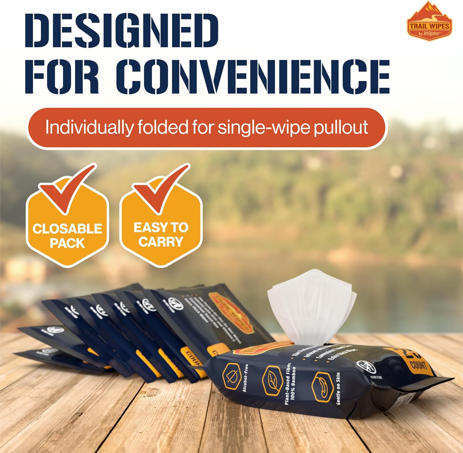 Inspire Trail Wipes | Camping Wipes Body Wipes Adults | Biodegradable Wipes For Camping, Travel, Gym With Aloe And Vitamin E | No Rinse Bathing Shower Wipes Women Or Men