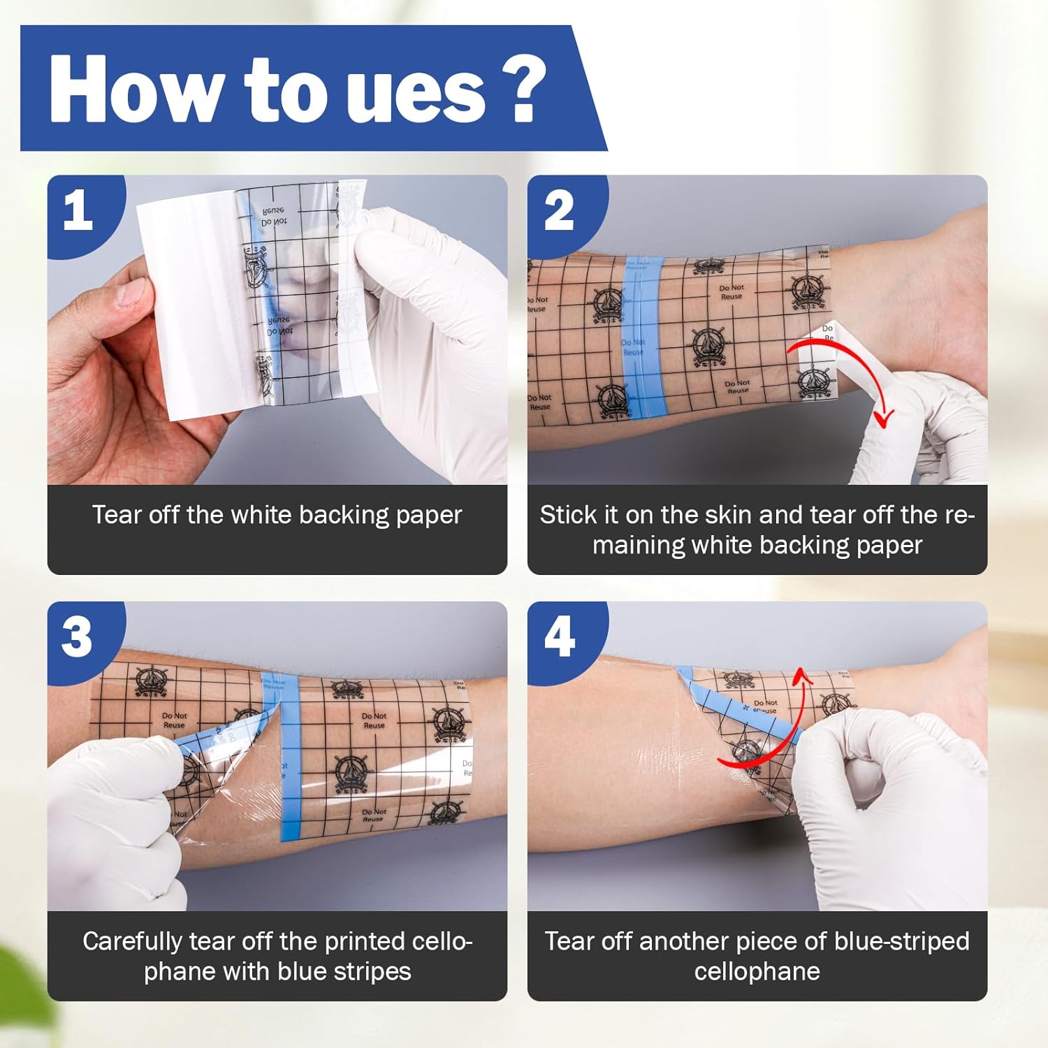 - Protection and Healing: Fixed dressing; Waterproof sticker; After tattoo care, etc. It can help lock the color, protect your tattooed skin, reduce scab when you wash or moisturize your tattoo, quickly form a protective film, and then accelerate your recovery