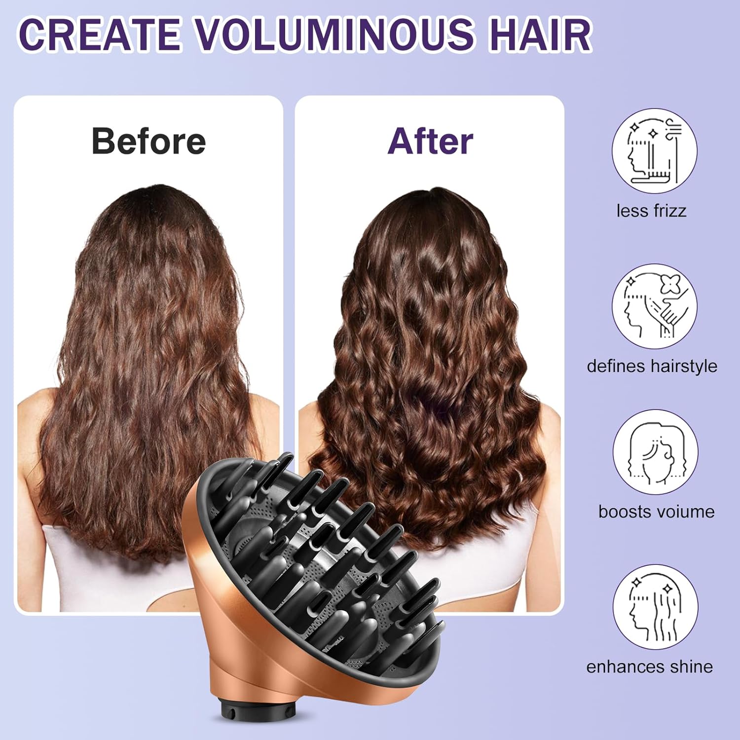 - Instant Hair Dryer Conversion: Seamlessly convert your styler into a versatile hair dryer in seconds. This universal diffuser hair dryer attachment, compatible with Dyson Airwrap, requires no adapters and snaps on securely for a flawless fit every time.