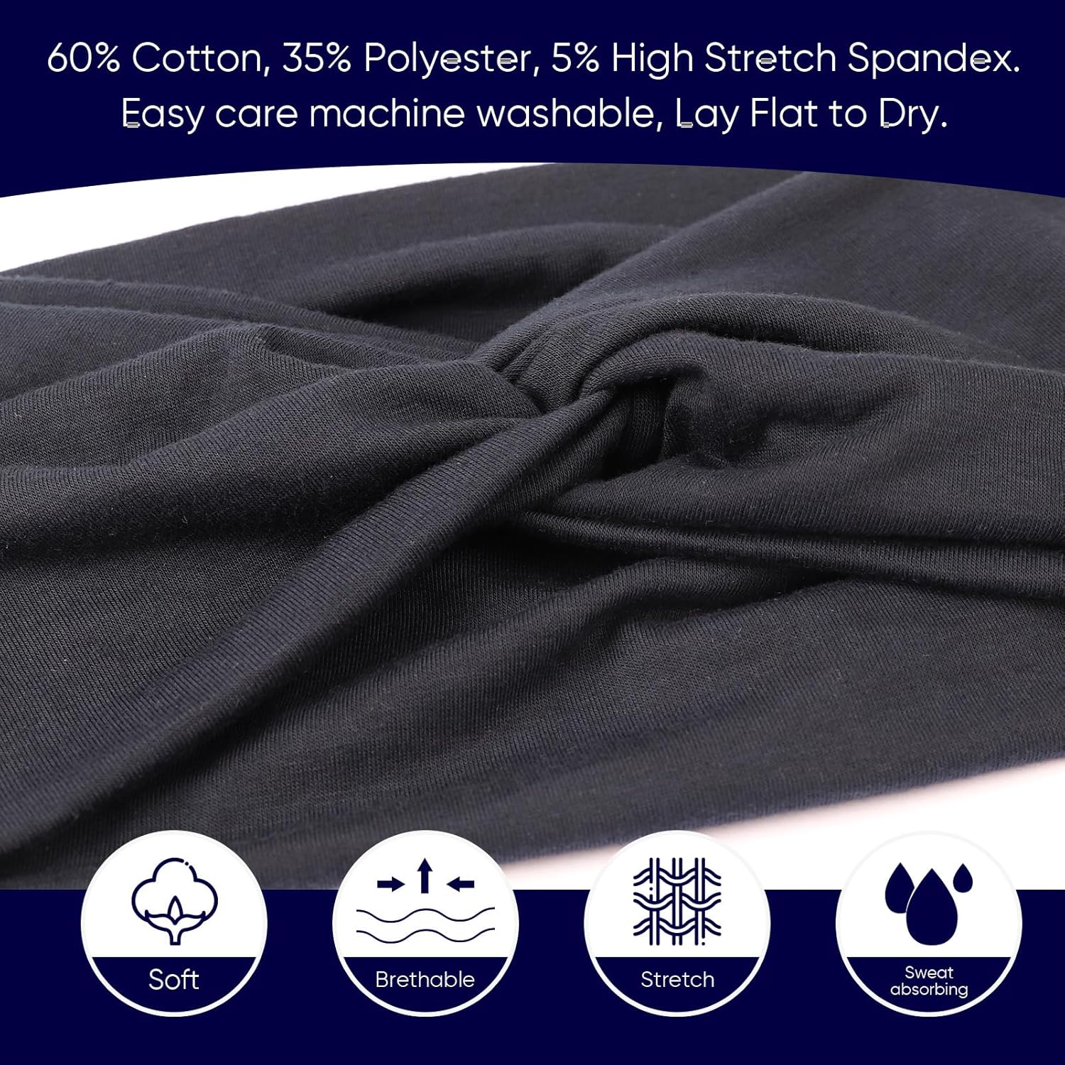 - Great Material - AQOKKA wide headbands for women are made of high-quality polyester and spandex. The fabric is breathable and soft with excellent sweat absorption to keep your forehead dry without bringing a stuffy feeling, which can keep your forehead dry and cool without bringing a stuffy feeling. These headbands have excellent support, you can wear them all day without pain.