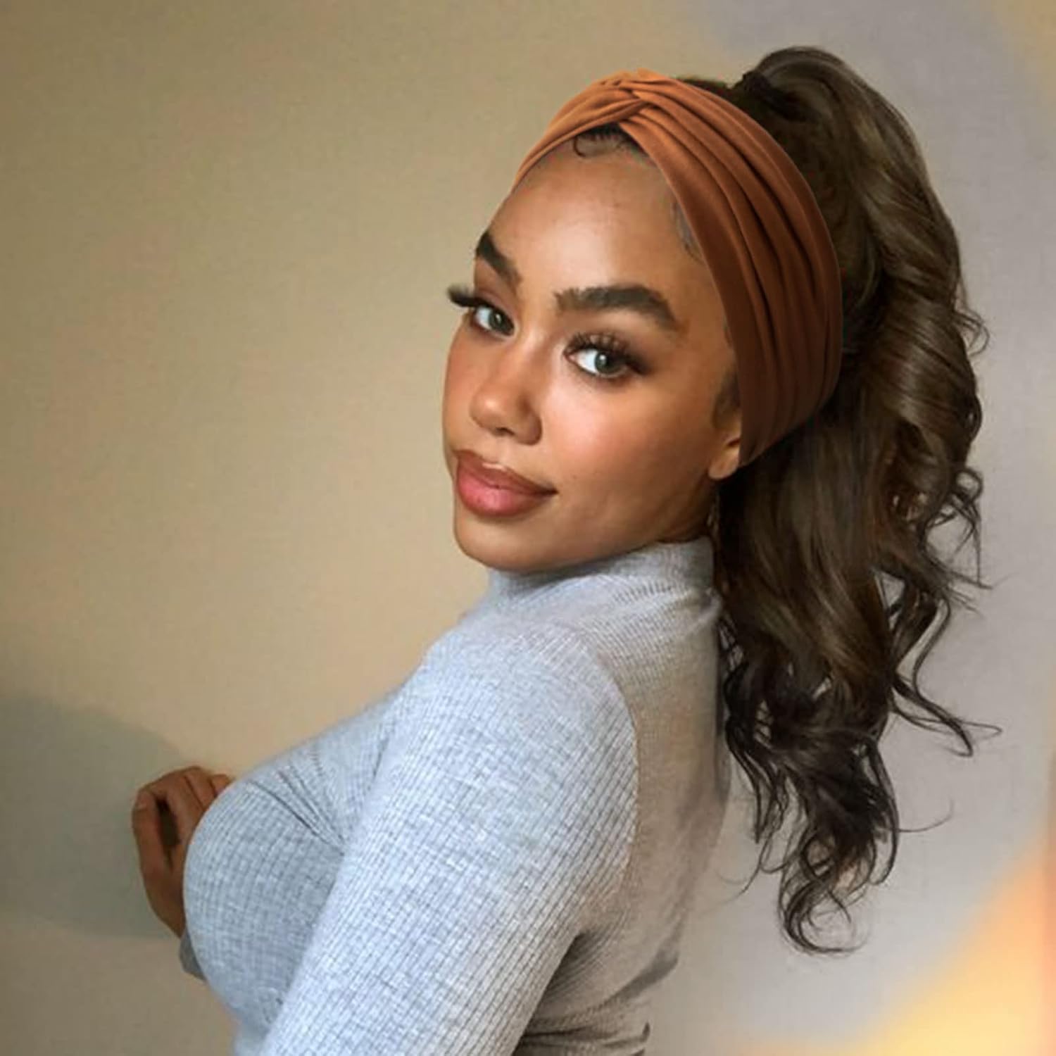 Extra Wide Headbands for Women Large Turban Headband Non Slip Boho Elastic Hairband Hair Twisted Knot Head Bands Accessories