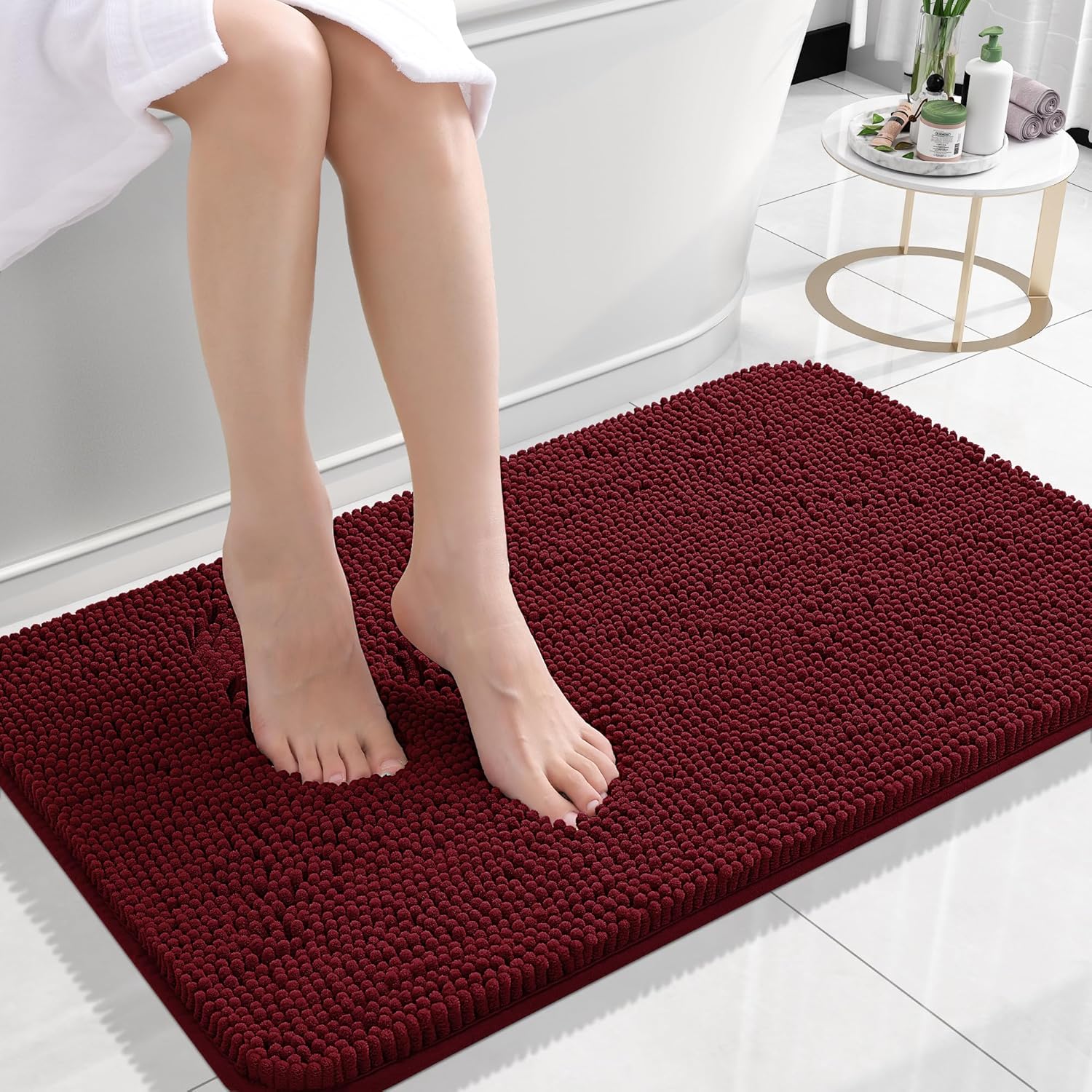 OLANLY Bathroom Rugs 24x16, Extra Soft Absorbent Chenille Bath Rugs, Rubber Backing Quick Dry, Machine Washable Bath Mats for Bathroom Floor, Tub and Shower, Home Decor Accessories, Burgundy